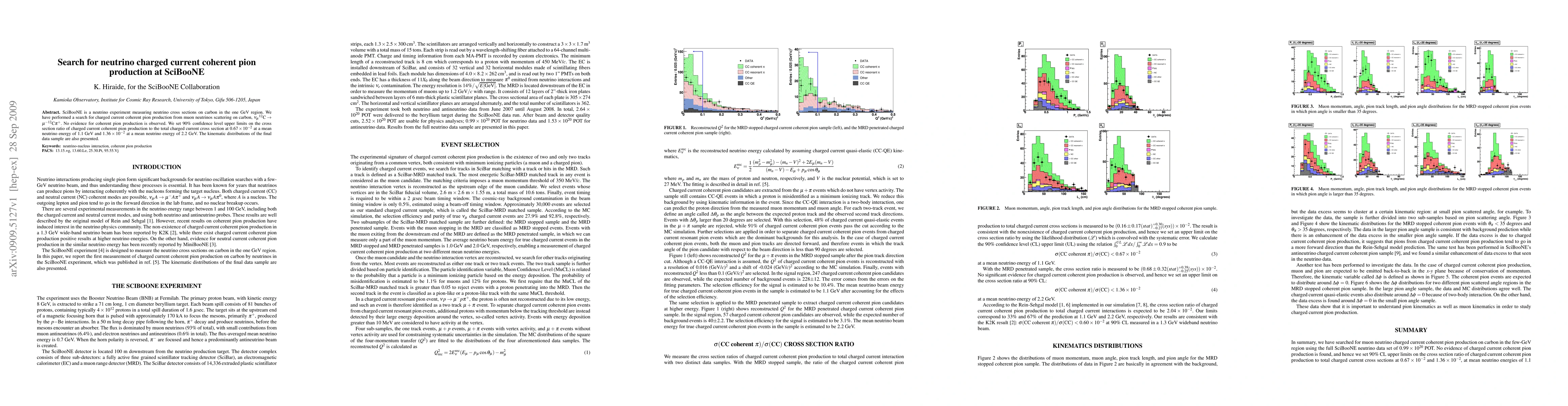 The SciBooNE experiment searched for charged current coherent pion production from muon neutrinos on carbon but found no evidence for it. Upper limits on the cross section ratio were set at 0.67×10^-2 for 1.1 GeV and 1.36×10^-2 for 2.2 GeV mean neutrino energy.