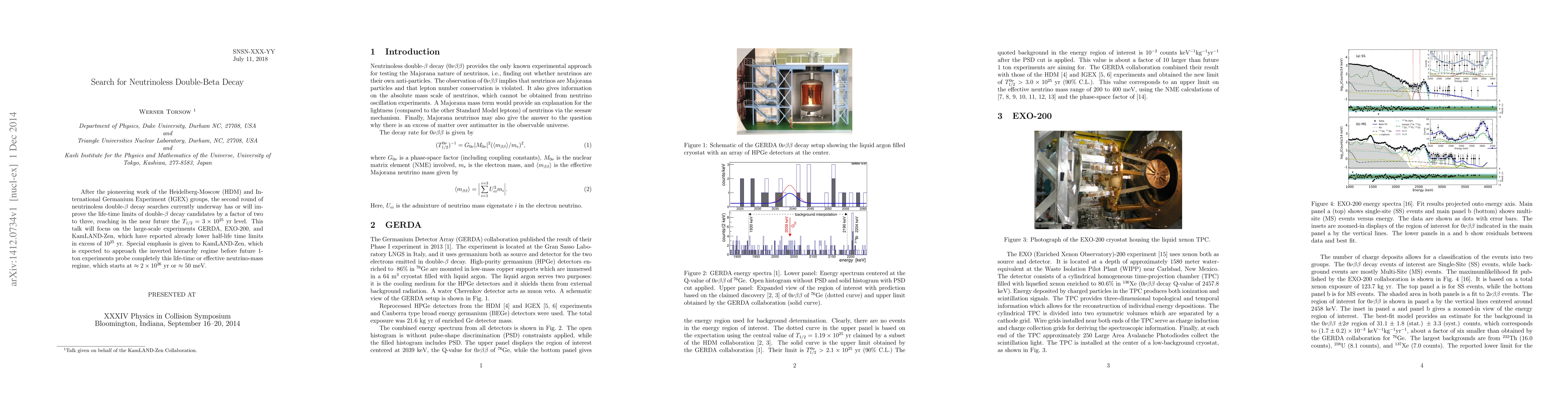 After the pioneering work of the Heidelberg-Moscow (HDM) and International Germanium Experiment (IGEX) groups, the second round of neutrinoless double-$\beta$ decay searches currently underway has or will improve the life-time limits of double-$\beta$ decay candidates by a factor of two to three, reaching in the near future the $T_{1/2} = 3 \times 10^{25}$ yr level. This talk will focus on the large-scale experiments GERDA, EXO-200, and KamLAND-Zen, which have reported already lower half-life time limits in excess of $10^{25}$ yr. Special emphasis is given to KamLAND-Zen, which is expected to approach the inverted hierarchy regime before future 1-ton experiments probe completely this life-time or effective neutrino-mass regime, which starts at $\approx 2 \times 10^{26}$ yr or $\approx 50$ meV.