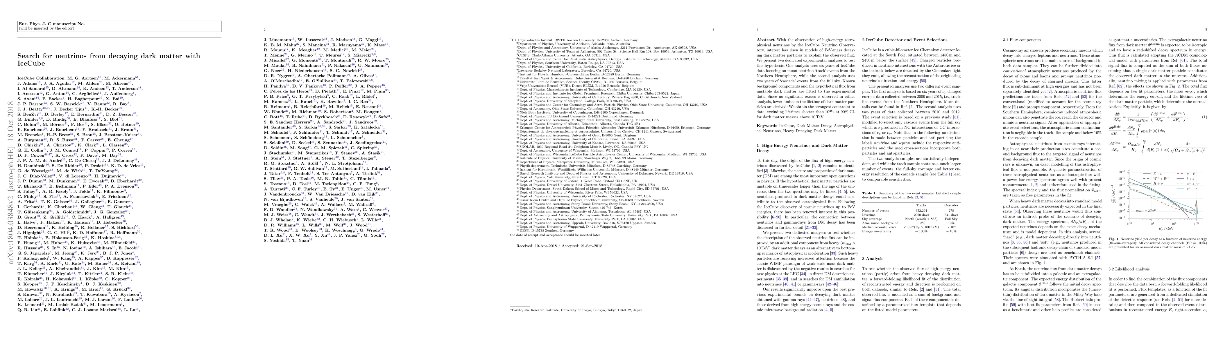The IceCube Neutrino Observatory conducted two analyses to test if high-energy neutrinos originate from decaying dark matter, finding no significant excess. The results set the strongest limits to date, excluding lifetimes shorter than $10^{28}\,$s for dark matter masses above $10\,$TeV at $90\%$ confidence level.