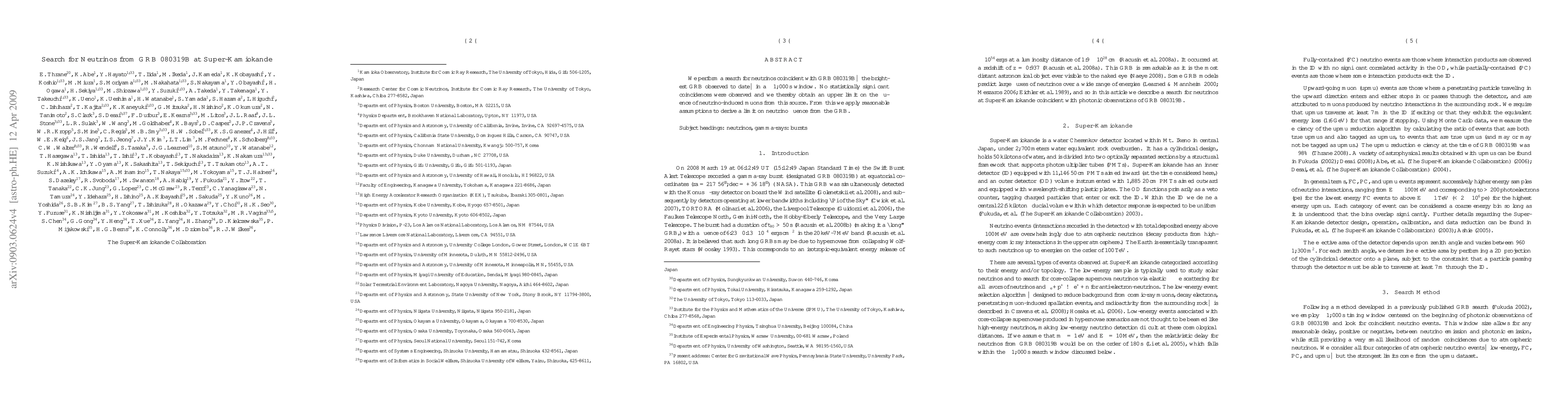 We perform a search for neutrinos coincident with GRB 080319B, the brightest GRB observed to date, in a +/- 1,000 s window. No statistically significant coincidences were observed and we thereby obtain an upper limit on the fluence of neutrino-induced muons from this source. From this we apply reasonable assumptions to derive a limit on neutrino fluence from the GRB.