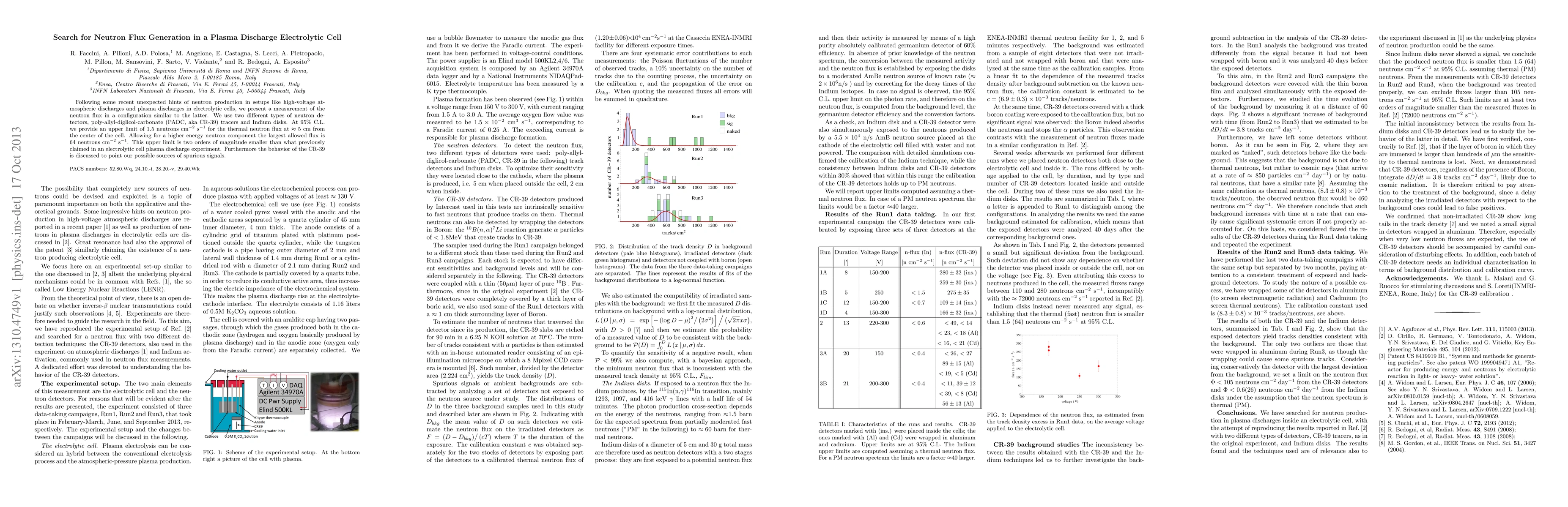 This study investigates neutron flux generation in a plasma discharge electrolytic cell, using PADC tracers and Indium disks as detectors. The research finds an upper limit of 1.5 thermal neutrons cm^-2 s^-1, significantly lower than previous claims, with a broader limit of 64 neutrons cm^-2 s^-1 for higher energy neutrons.