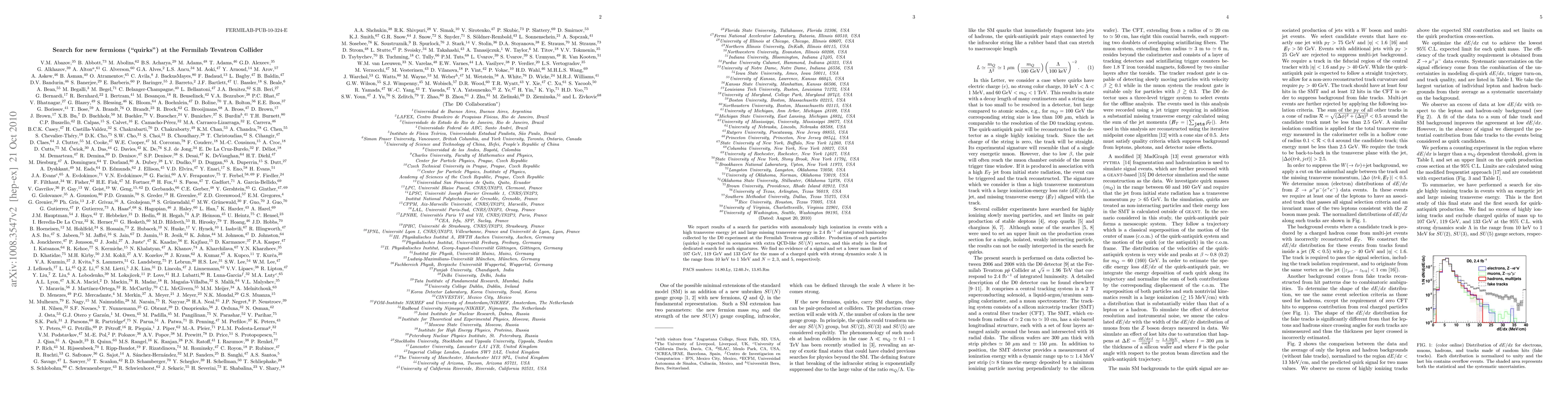 The D0 experiment at the Fermilab Tevatron searched for new fermions called "quirks" in high-energy proton-antiproton collisions, but no evidence of their existence was found. A lower mass limit of 107 GeV was established for charged quirks with strong dynamics scales between 10 keV and 1 MeV.