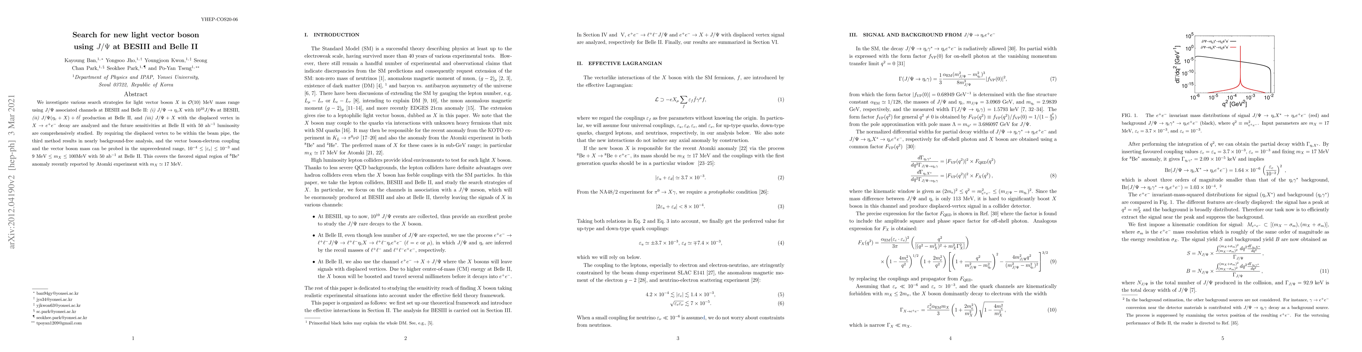 This paper explores search strategies for a new light vector boson $X$ in the $10~{\rm MeV}$ mass range using $J/\Psi$ associated channels at BESIII and Belle II. The study includes $J/\Psi$ decay and production analyses, with future sensitivities at Belle II up to 50 ${\rm ab}^{-1}$ revealing potential coupling and mass ranges, including the $^8{\rm Be}^*$ anomaly region.