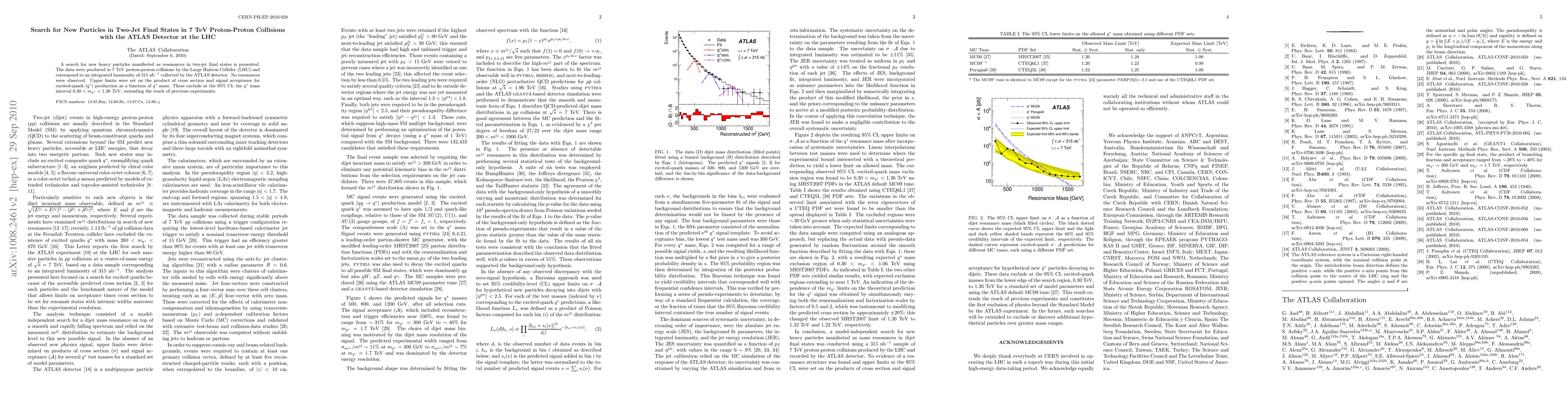 A search for new heavy particles manifested as resonances in two-jet final states is presented. The data were produced in 7 TeV proton-proton collisions by the Large Hadron Collider (LHC) and correspond to an integrated luminosity of 315 nb^-1 collected by the ATLAS detector. No resonances were observed. Upper limits were set on the product of cross section and signal acceptance for excited-quark (q*) production as a function of q* mass. These exclude at the 95% CL the q* mass interval 0.30 < mq* < 1.26 TeV, extending the reach of previous experiments.