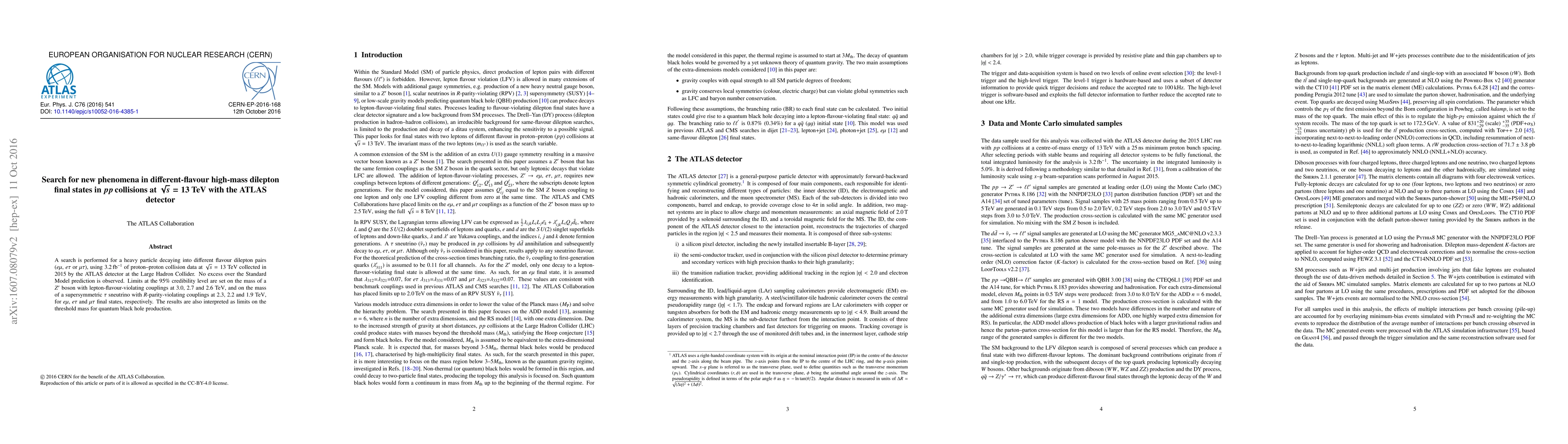 This paper investigates new heavy particles decaying into different-flavour dilepton pairs using ATLAS data from 2015. No deviations from Standard Model predictions were found, leading to new mass limits for $Z^{\prime}$ bosons and supersymmetric $\tau$ sneutrinos.