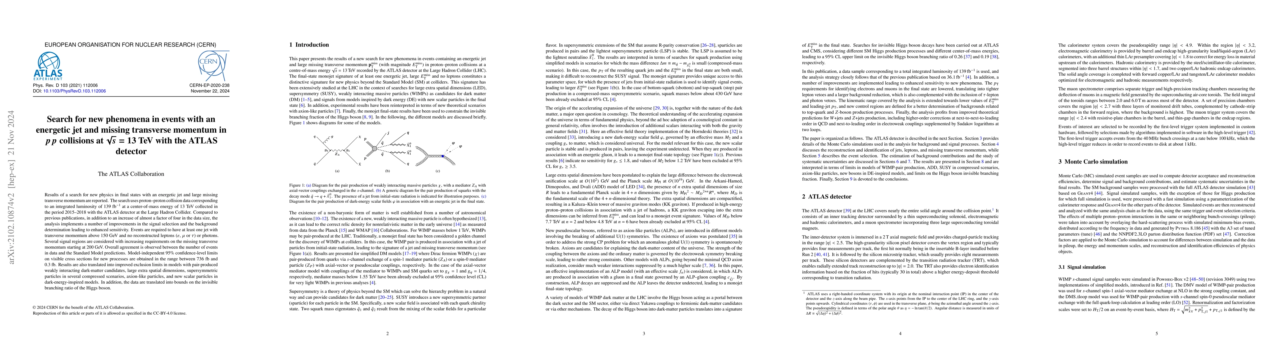 This paper reports a search for new physics in proton-proton collisions at 13 TeV using the ATLAS detector, focusing on events with high-energy jets and significant missing transverse momentum. The analysis improves sensitivity and finds no deviations from Standard Model predictions, setting new limits on various new physics models.