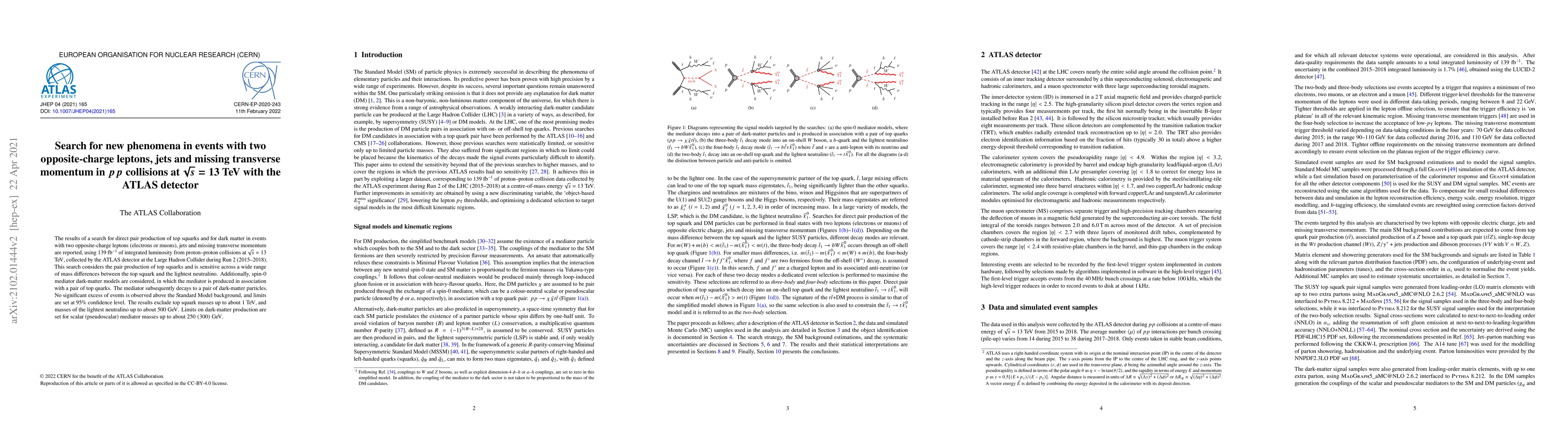 This paper reports a search for top squark pair production and dark matter in proton-proton collisions at 13 TeV using the ATLAS detector, finding no significant excess above Standard Model predictions. The results exclude top squark masses up to 1 TeV and lightest neutralino masses up to 500 GeV.