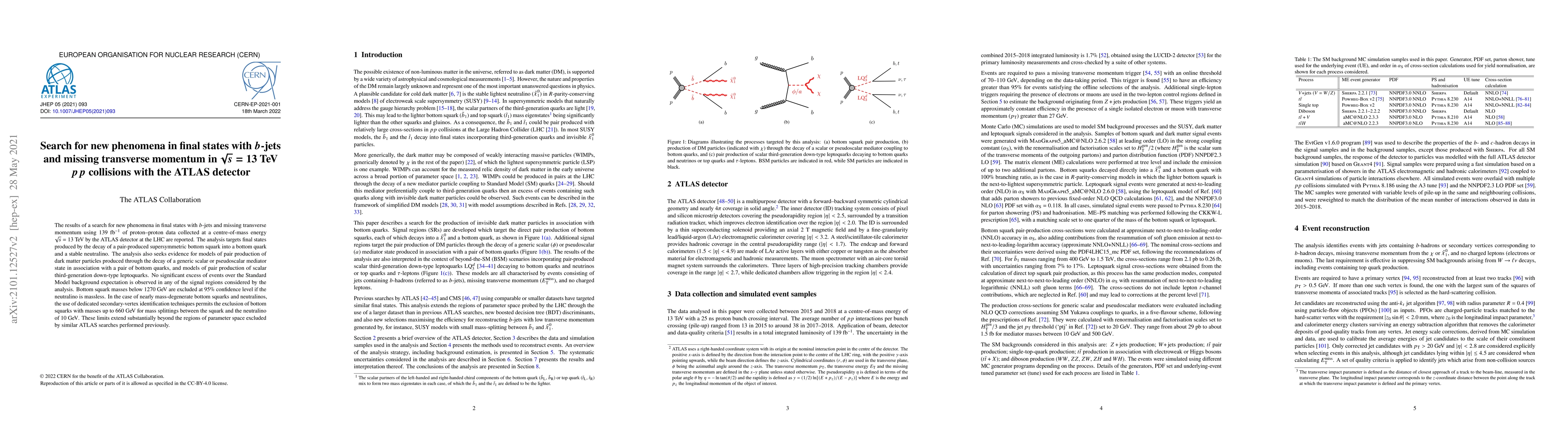 The ATLAS detector searched for new phenomena in proton-proton collisions with 139 fb$^{-1}$ data and found no significant excess over Standard Model background expectations. The analysis set limits on supersymmetric bottom squark masses below 1270 GeV.