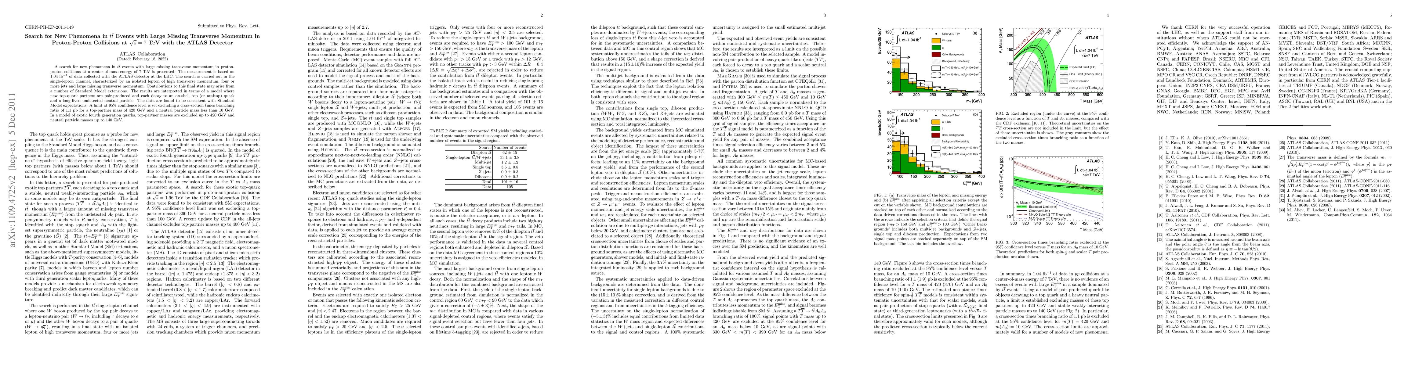 This paper reports a search for new phenomena in ttbar events with significant missing transverse momentum using data from proton-proton collisions at 7 TeV with the ATLAS detector. The analysis finds no deviations from Standard Model predictions and sets limits on the production of new top-quark partners and associated undetected neutral particles.