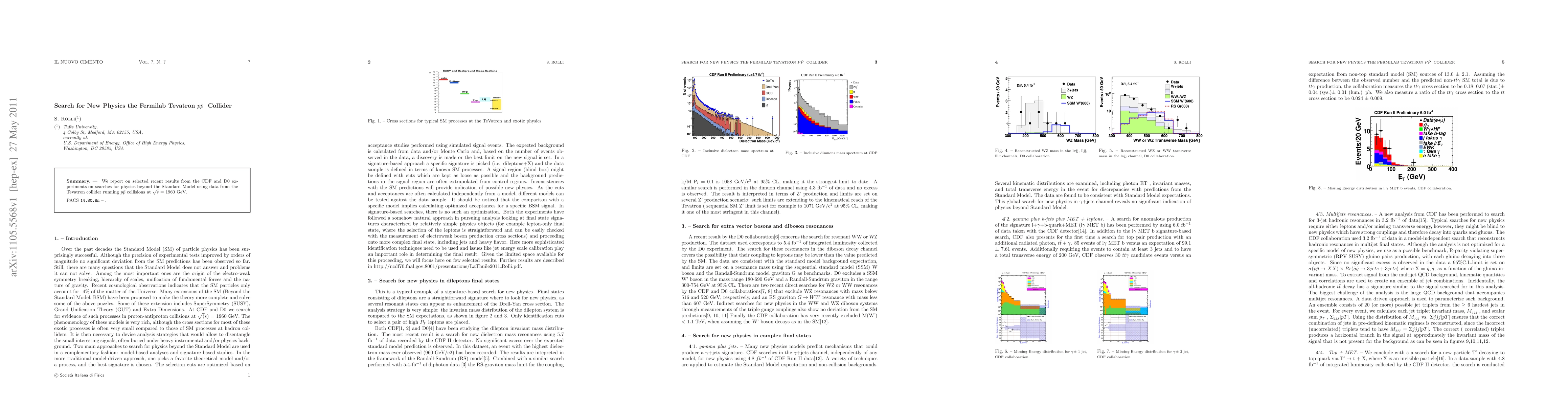 Summary: This paper presents selected results from the CDF and D0 experiments at the Tevatron collider, focusing on searches for new physics beyond the Standard Model using data from proton-antiproton collisions at a center-of-mass energy of 1.96 TeV. No significant deviations from the Standard Model were observed in the analyzed data.