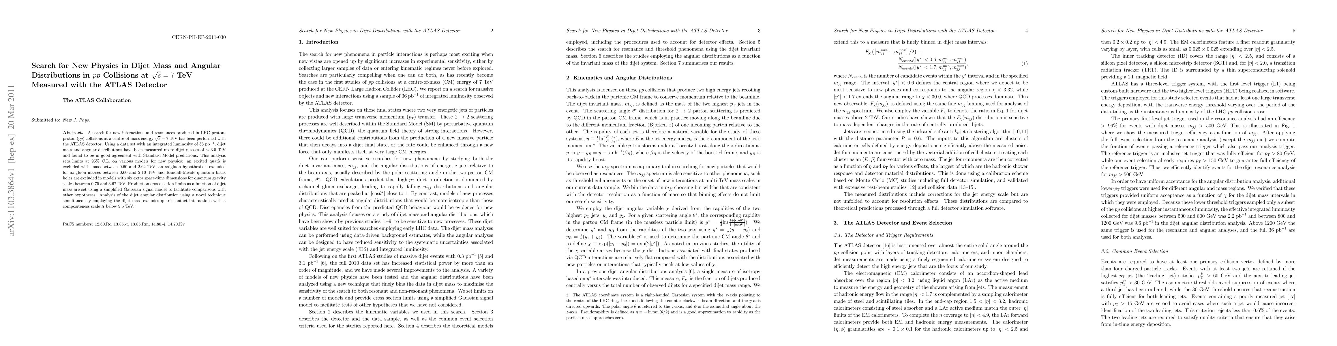 This paper reports a search for new physics in dijet mass and angular distributions from LHC proton-proton collisions at 7 TeV using the ATLAS detector, finding no deviations from Standard Model predictions. It sets limits on new physics models, including excited quarks, axigluons, and Randall-Meade quantum black holes, and employs a novel technique to exclude quark contact interactions.