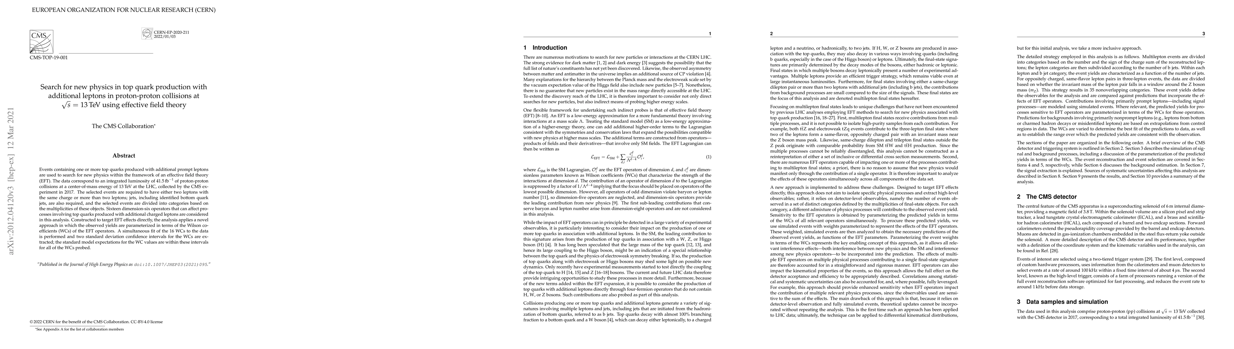 Researchers searched for new physics in top quark production with additional leptons at 13 TeV, using an effective field theory approach and found no evidence of beyond-standard-model effects within two standard deviation confidence intervals.