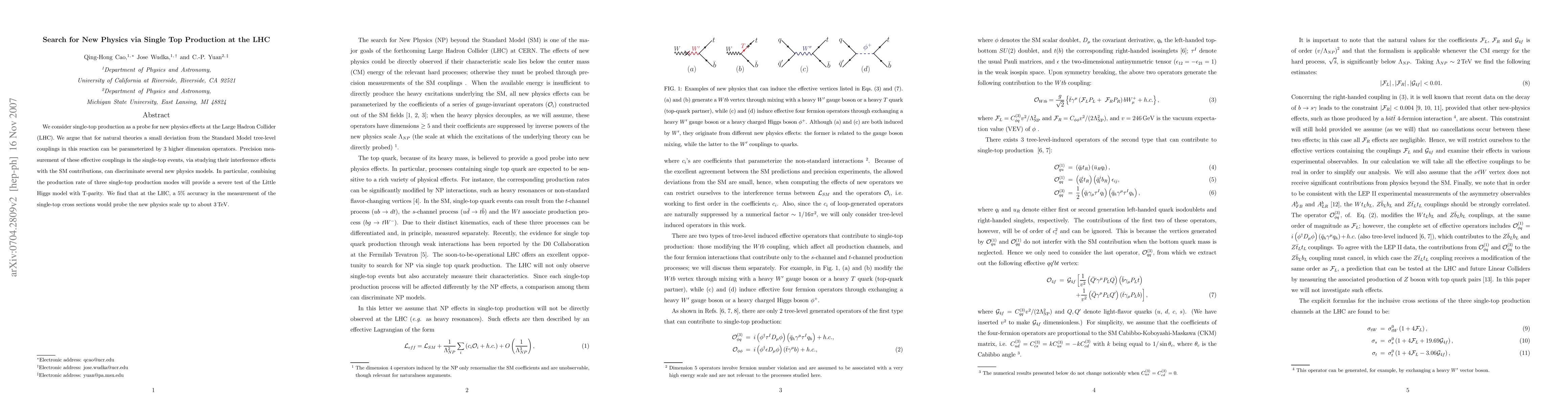 This paper explores single-top production at the LHC as a method to detect new physics beyond the Standard Model, parameterizing small deviations with higher dimension operators. It highlights that precise measurements of these effective couplings can distinguish various new physics models, particularly testing the Little Higgs model, and suggests that a 5% accuracy in cross-section measurements could probe new physics up to a scale of approximately 3 TeV.