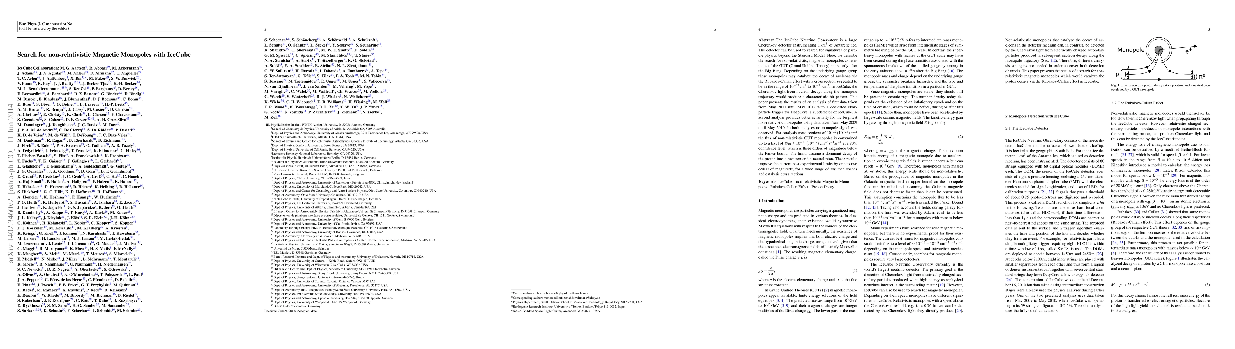 The IceCube Neutrino Observatory conducted searches for non-relativistic magnetic monopoles, which could catalyze nucleon decay, but found no evidence of them. The study improved existing experimental limits by one to two orders of magnitude, constraining their flux significantly.