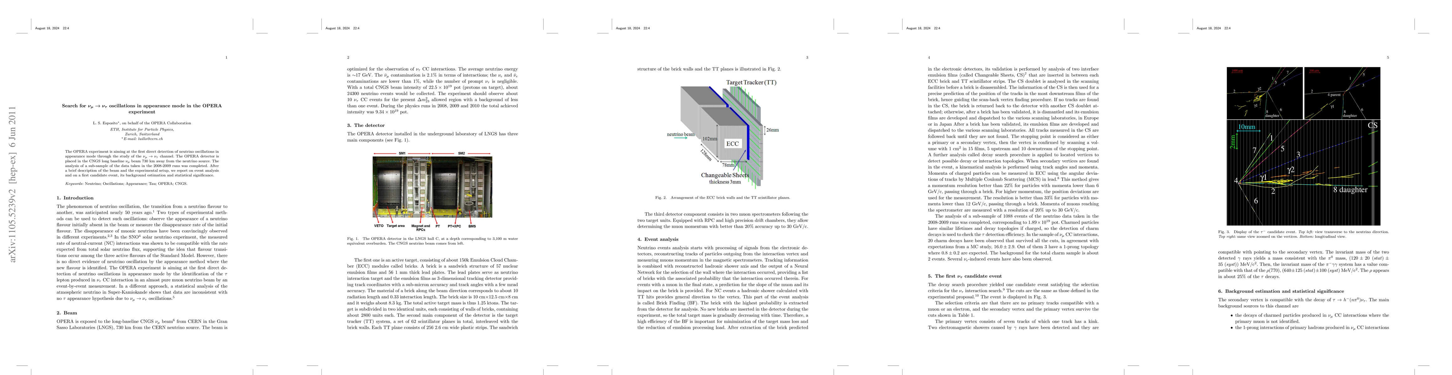 The OPERA experiment is aiming at the first direct detection of neutrino oscillations in appearance mode through the study of the {\nu}{\mu} {\tp} {\nu}{\tau} channel. The OPERA detector is placed in the CNGS long baseline {\nu}{\mu} beam 730 km away from the neutrino source. The analysis of a sub-sample of the data taken in the 2008-2009 runs was completed. After a brief description of the beam and the experimental setup, we report on event analysis and on a first candidate event, its background estimation and statistical significance.