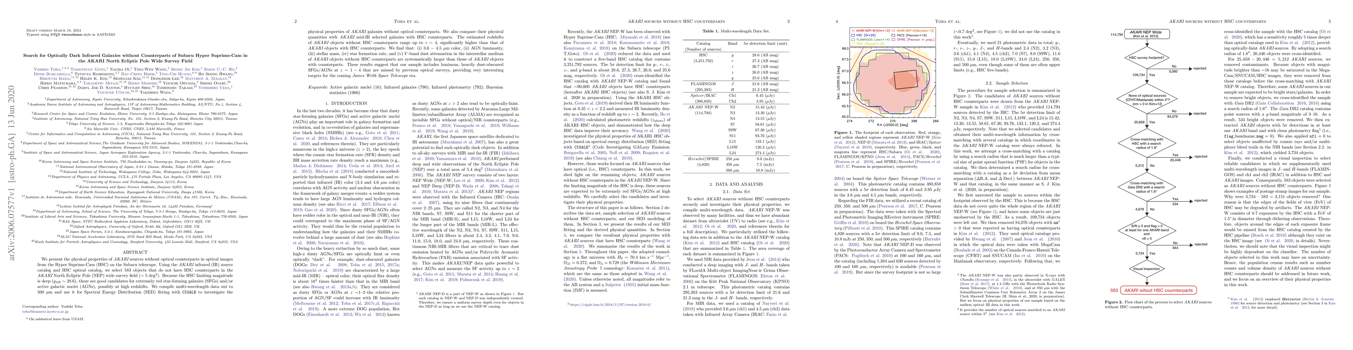 We present the physical properties of AKARI sources without optical counterparts in optical images from the Hyper Suprime-Cam (HSC) on the Subaru telescope. Using the AKARI infrared (IR) source catalog and HSC optical catalog, we select 583 objects that do not have HSC counterparts in the AKARI North Ecliptic Pole (NEP) wide survey field ($\sim 5$ deg$^{2}$). Because the HSC limiting magnitude is deep ($g_{\rm AB}$ $\sim 28.6$), these are good candidates for extremely red star-forming galaxies (SFGs) and/or active galactic nuclei (AGNs), possibly at high redshifts. We compile multi-wavelength data out to 500 $\mu$m and use it for Spectral Energy Distribution (SED) fitting with CIGALE to investigate the physical properties of AKARI galaxies without optical counterparts. We also compare their physical quantities with AKARI mid-IR selected galaxies with HSC counterparts. The estimated redshifts of AKARI objects without HSC counterparts range up to $z\sim 4$, significantly higher than that of AKARI objects with HSC counterparts. We find that: (i) 3.6 $-$ 4.5 $\mu$m color, (ii) AGN luminosity, (iii) stellar mass, (iv) star formation rate, and (v) $V$-band dust attenuation in the interstellar medium of AKARI objects without HSC counterparts are systematically larger than those of AKARI objects with counterparts. These results suggest that our sample includes luminous, heavily dust-obscured SFGs/AGNs at $z\sim 1-4$ that are missed by previous optical surveys, providing very interesting targets for the coming James Webb Space Telescope era.