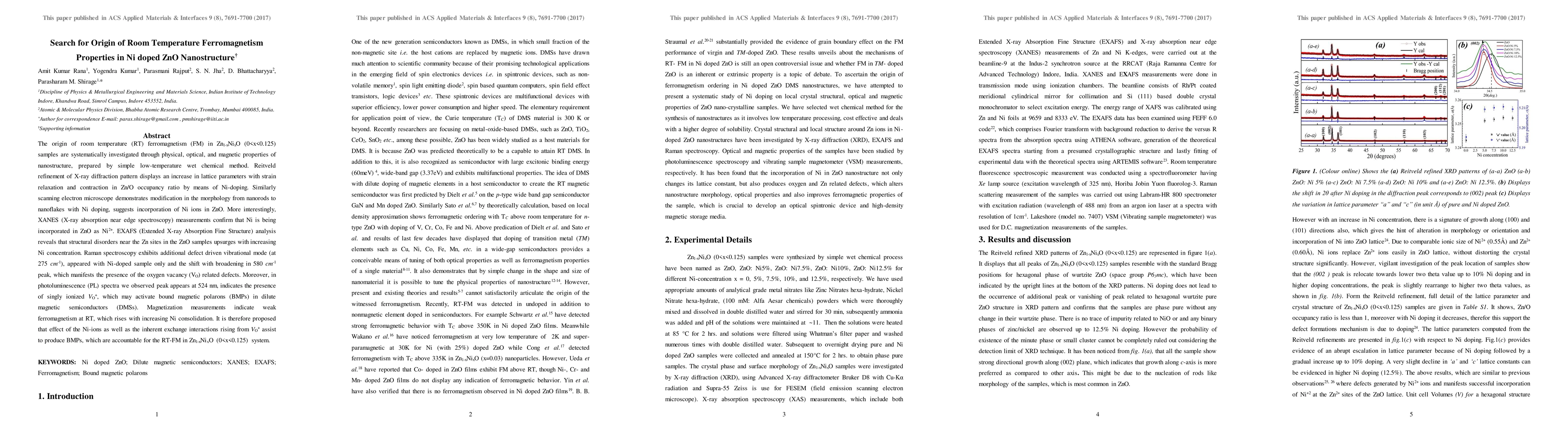 incorporated in ZnO as Ni2+. EXAFS (Extended X-ray Absorption Fine Structure)