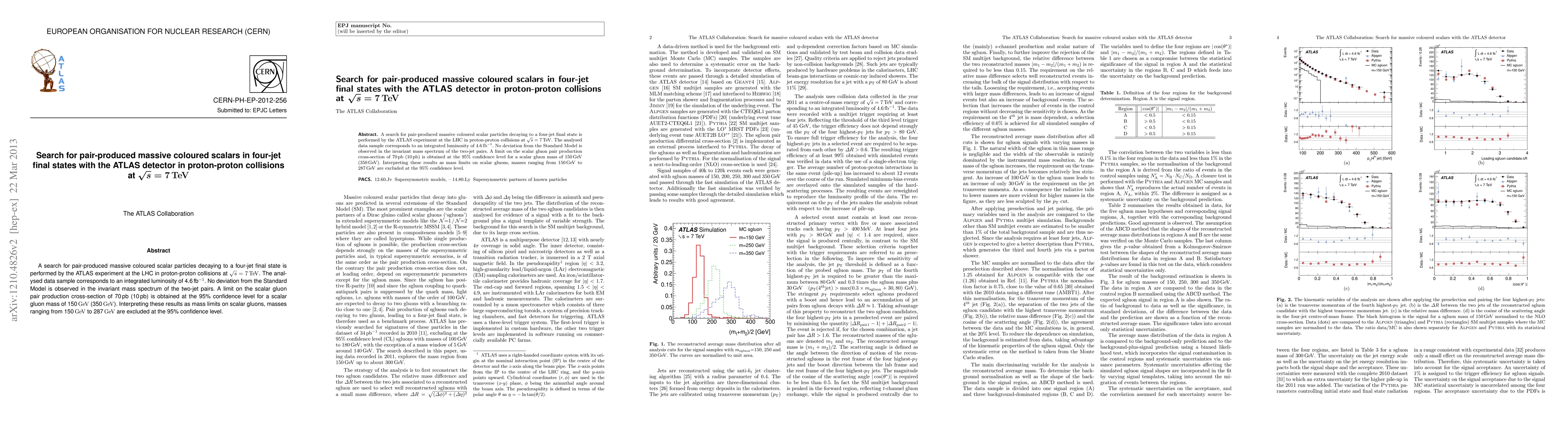 A search for pair-produced massive coloured scalar particles decaying to a four-jet final state is performed by the ATLAS experiment at the LHC in proton-proton collisions at sqrt(s) = 7 TeV. The analysed data sample corresponds to an integrated luminosity of 4.6 /fb. No deviation from the Standard Model is observed in the invariant mass spectrum of the two-jet pairs. A limit on the scalar gluon pair production cross-section of 70 pb (10 pb) is obtained at the 95% confidence level for a scalar gluon mass of 150 GeV (350 GeV). Interpreting these results as mass limits on scalar gluons, masses ranging from 150 GeV to 287 GeV are excluded at the 95% confidence level.