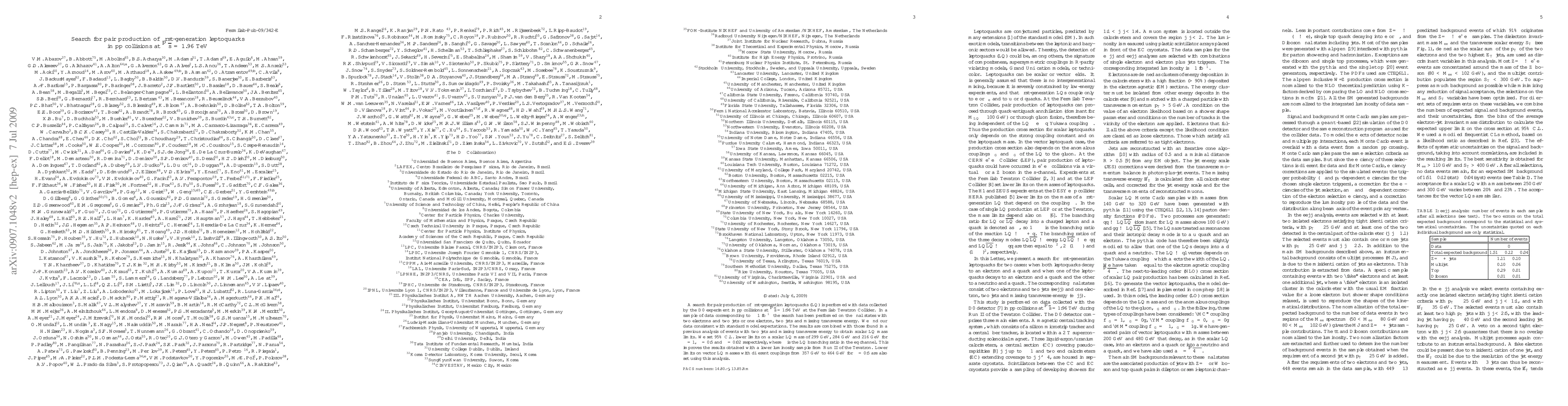 The D0 experiment searched for pair production of first-generation leptoquarks in p pbar collisions at 1.96 TeV, finding no deviations from standard model predictions. New lower limits on scalar LQ masses were set at 299 GeV, 284 GeV, and 216 GeV for different branching ratios.