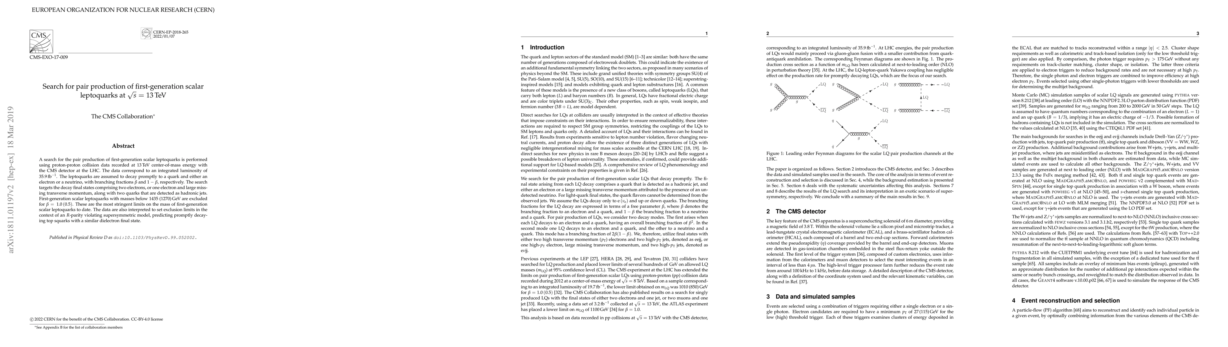 This paper reports a search for pair production of first-generation scalar leptoquarks using 13 TeV proton-proton collision data at the LHC, setting stringent limits on their mass. The analysis excludes leptoquarks with masses below 1435 GeV for a fully leptonic decay, and below 1270 GeV for a mixed decay, providing the most stringent constraints to date.