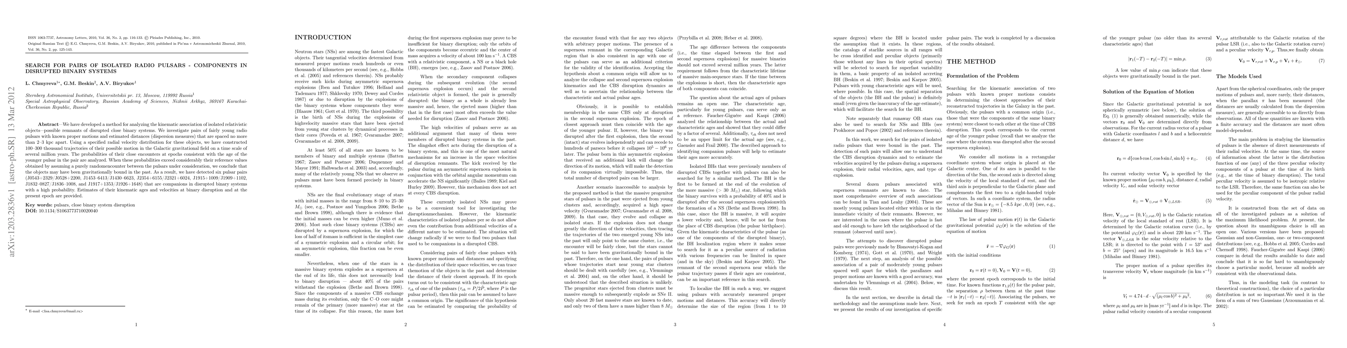 A study identifies six pairs of young radio pulsars as potential remnants of disrupted close binary systems, suggesting they were gravitationally bound in the past.