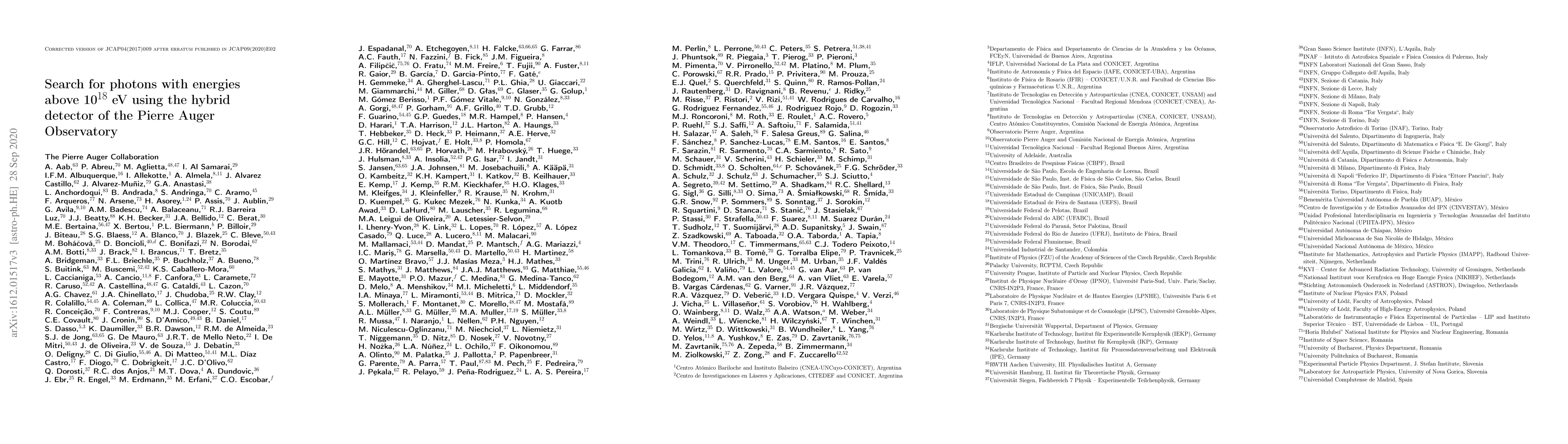 The Pierre Auger Observatory's hybrid detector finds no ultra-high energy photons above 1 EeV, setting stringent upper limits on their flux and constraining photon fractions below 3%. These results rule out early top-down models for ultra-high energy cosmic rays and challenge recent super-heavy dark matter models.