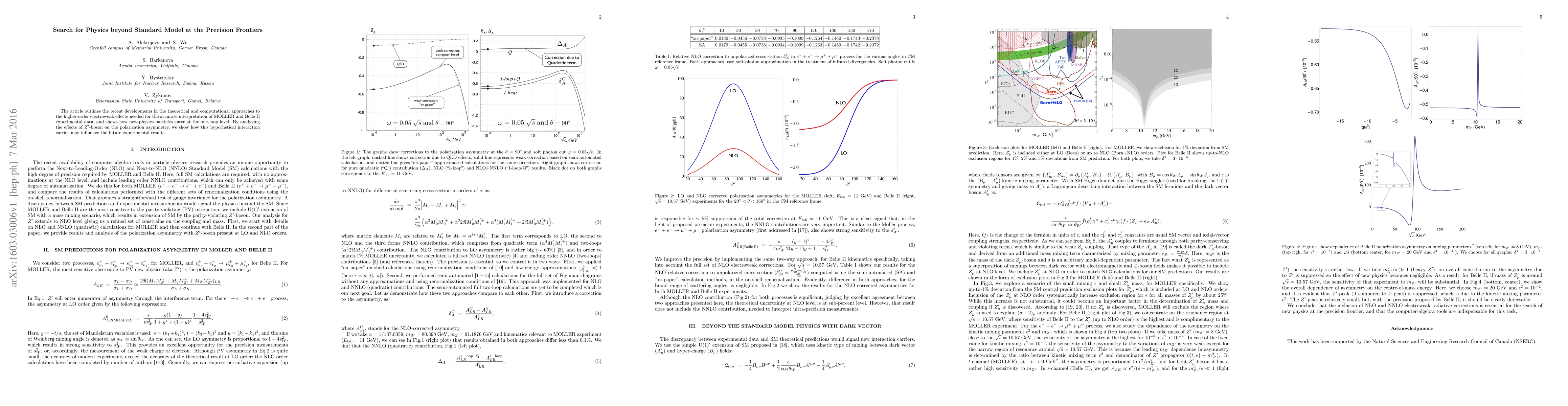 The article outlines the recent developments in the theoretical and computational approaches to the higher-order electroweak effects needed for the accurate interpretation of MOLLER and Belle II experimental data, and shows how new-physics particles enter at the one-loop level. By analyzing the effects of $Z'$-boson on the polarization asymmetry, we show how this hypothetical interaction carrier may influence the future experimental results.
