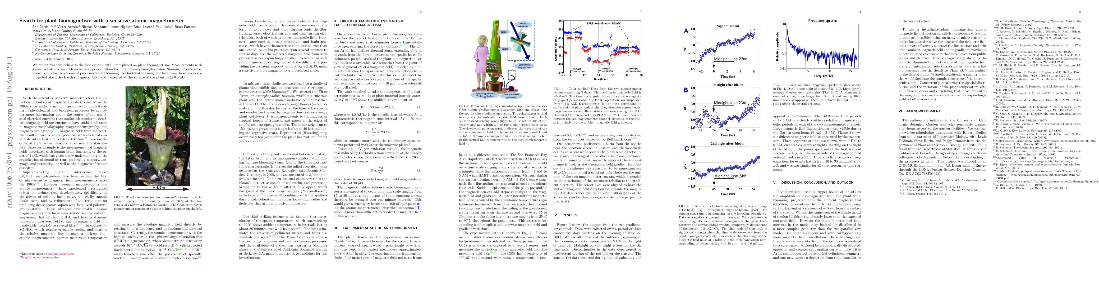 We report what we believe is the first experimental limit placed on plant biomagnetism. Measurements with a sensitive atomic magnetometer were performed on the Titan arum (Amorphophallus titanum) inflorescence, known for its fast bio-chemical processes while blooming. We find that the surface magnetic field from these processes, projected along the Earth's magnetic field, and measured at the surface of the plant, is less then ~0.6uG.