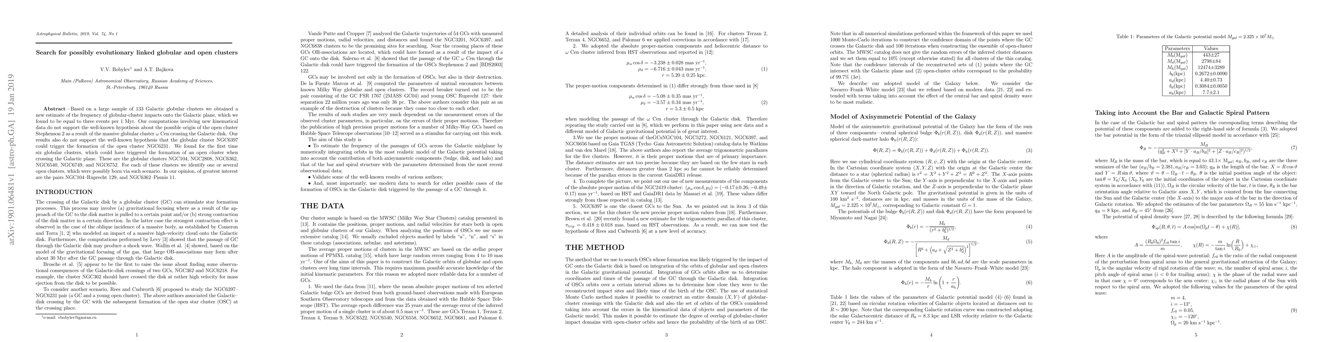 A study of 133 Galactic globular clusters found six possible triggers for open cluster formation when crossing the plane, including NGC104, NGC6362, and NGC6540. These findings challenge previous hypotheses about the origins of some open clusters.