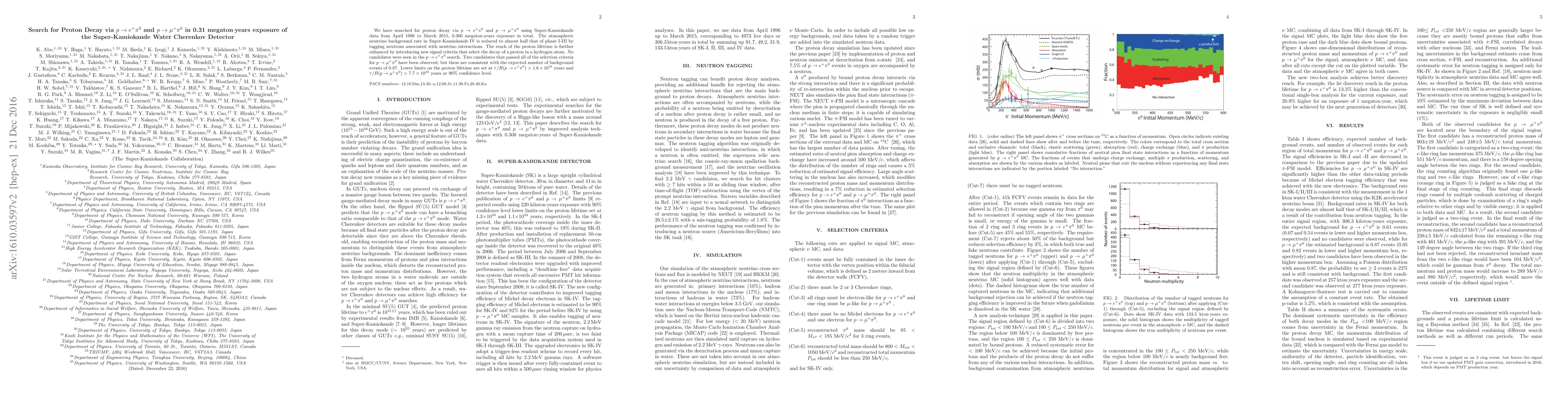 Researchers searched for proton decay using Super-Kamiokande data and set new lower limits on the proton lifetime of 1.6 x 10^34 years for electron decay and 7.7 x 10^33 years for muon decay.