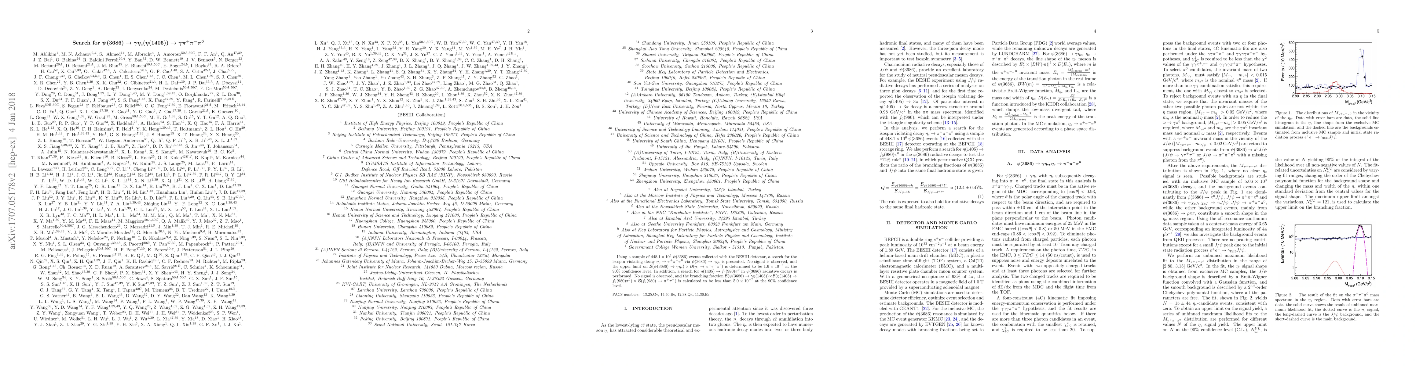 This paper reports a search for the isospin-violating decay $\eta_{c}\to\pi^{+}\pi^{-}\pi^{0}$ via $\psi(3686)\to\gamma\eta_{c}$ using BESIII data, finding no signal and setting an upper limit of $1.6\times10^{-6}$ on the branching fraction at $90\%$ confidence level. Additionally, no signal was found for $\eta(1405)\to f_{0}(980)\pi^{0}$, with a branching fraction lower limit of $5.0\times10^{-7}$ at $90\%$ confidence level.