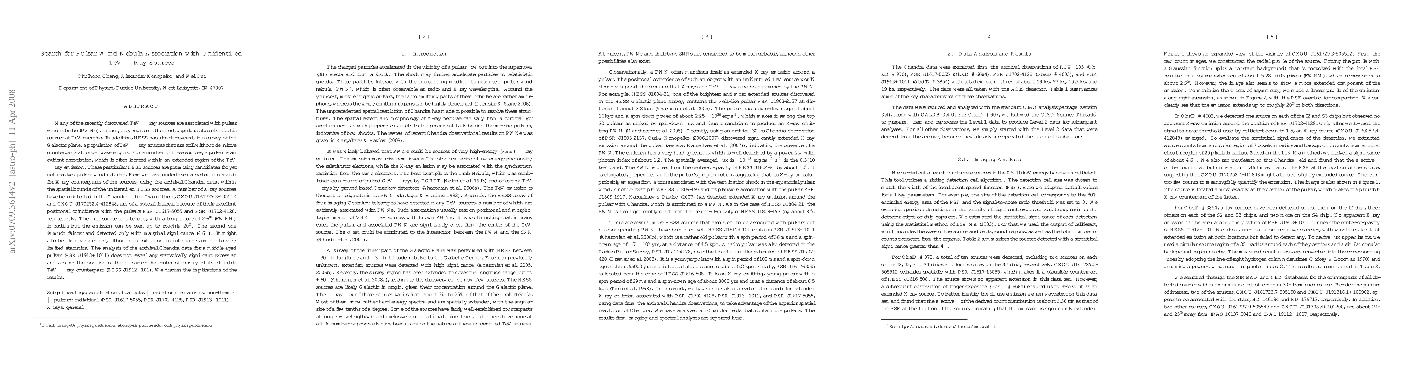 This research investigates the association of unidentified TeV gamma-ray sources with pulsar wind nebulae (PWNe) using archival Chandra X-ray data. Two X-ray sources were found near pulsars PSR J1617-5055 and PSR J1702-4128, suggesting potential PWNe, while no significant X-ray counterpart was detected near PSR J1913+1011.