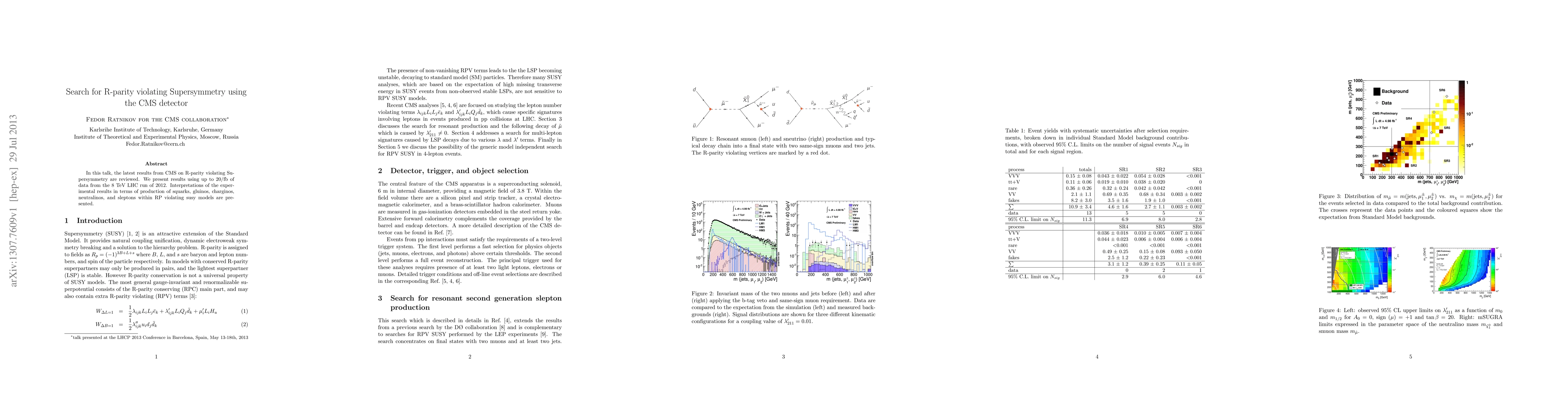 This paper reviews CMS detector results from the 8 TeV LHC run, examining R-parity violating Supersymmetry using up to 20/fb of data. It interprets findings in terms of potential production of various supersymmetric particles within these models.