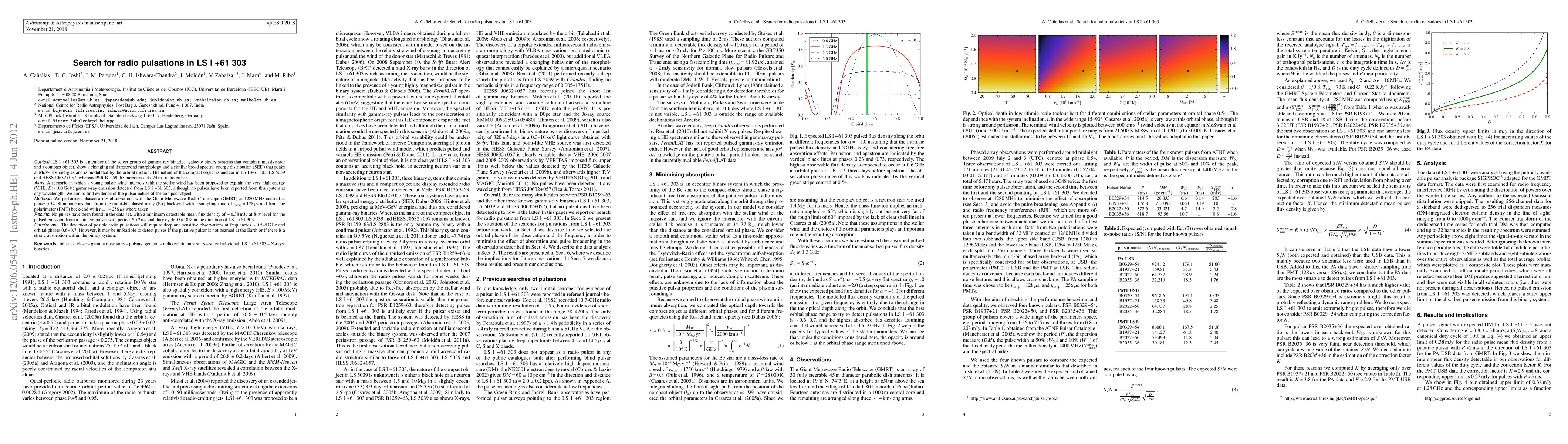 Researchers attempted to detect radio pulses from the binary system LS I +61 303 using the Giant Metrewave Radio Telescope and found no evidence of pulsed emission at frequencies between 0.5-5 GHz.