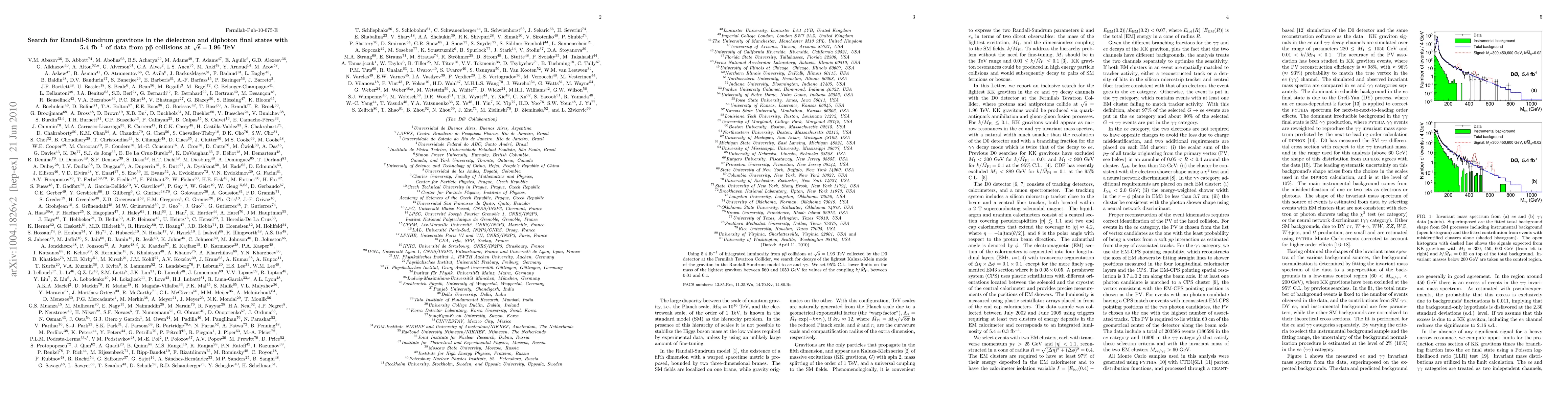 This study utilizes 5.4 fb-1 of data from ppbar collisions at sqrt(s)=1.96 TeV to search for Randall-Sundrum gravitons in dielectron and diphoton final states, setting 95% C.L. lower limits on the graviton mass between 560 GeV and 1050 GeV.