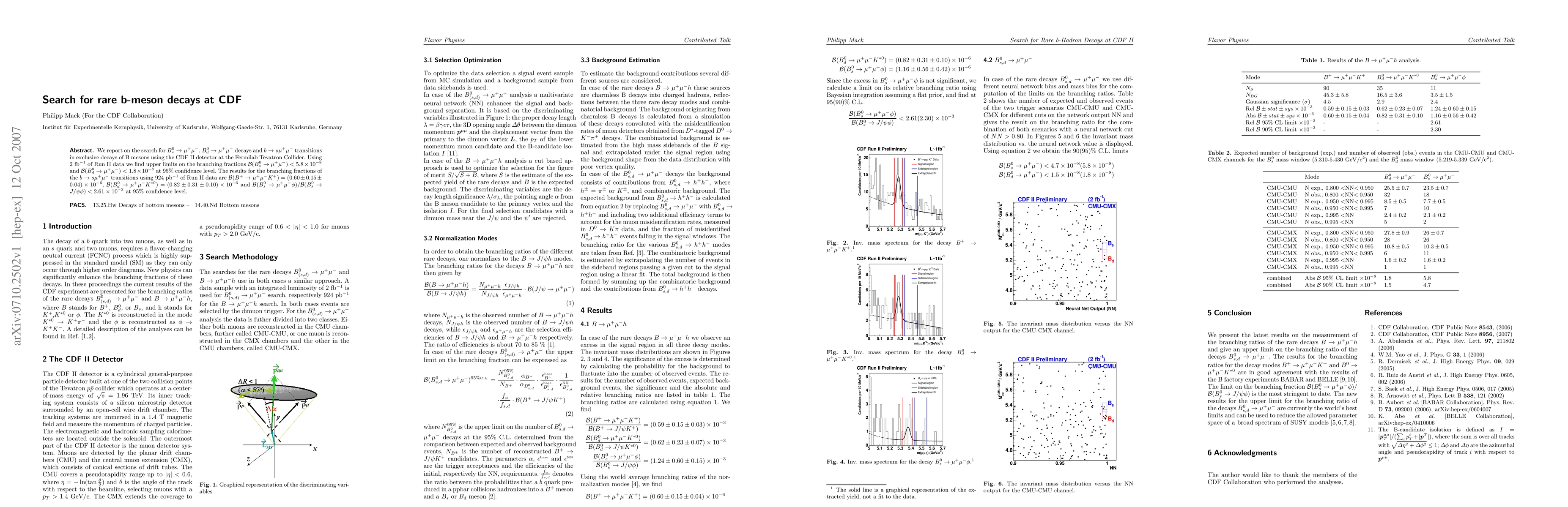 We report on the search for $B^0_s\to\mu^+\mu^-$, $B^0_d\to\mu^+\mu^-$ decays and $b\to s \mu^+\mu^-$ transitions in exclusive decays of B mesons using the CDF II detector at the Fermilab Tevatron Collider. Using 2 fb$^{-1}$ of Run II data we find upper limits on the branching fractions $\mathcal{B}(B^0_s\to\mu^+\mu^-)<5.8\times 10^{-8}$ and $\mathcal{B}(B^0_d\to\mu^+\mu^-)<1.8\times 10^{-8}$ at 95% confidence level. The results for the branching fractions of the $b\to s \mu^+\mu^-$ transitions using 924 pb$^{-1}$ of Run II data are $\mathcal{B}(B^+\to\mu^+\mu^-K^+)=(0.60\pm0.15\pm0.04)\times 10^{-6}$, $\mathcal{B}(B^0_d\to\mu^+\mu^-K^{*0})=(0.82\pm0.31\pm0.10)\times 10^{-6}$ and $\mathcal{B}(B^0_s\to \mu^+\mu^-\phi)/\mathcal{B}(B^0_s\to J/\psi\phi) < 2.61\times 10^{-3}$ at 95% confidence level.