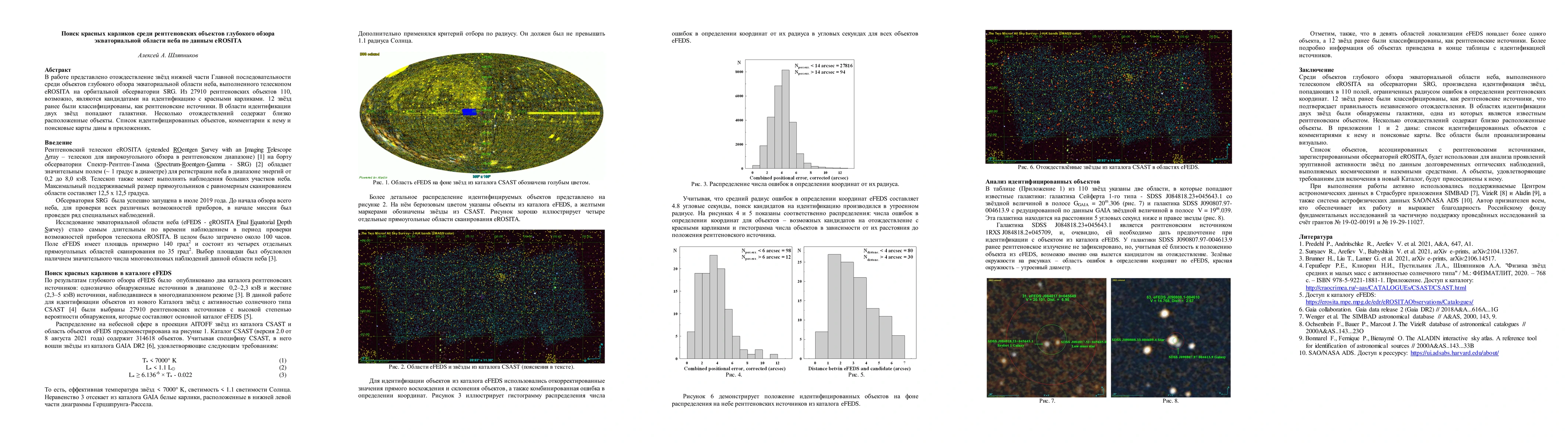 The paper presents the identification of the stars in the lower part of the Main Sequence among the objects of the deep survey of the equatorial region of the sky, performed by the eROSITA telescope at the SRG orbital observatory. Of the 27,910 X-ray objects, 110 are possibly candidates for identification with red dwarfs. 12 stars were previously classified as X-ray sources. In the area of identification of two stars, galaxies fall. Several identifications contain closely spaced objects. The list of identified objects, comments to it and search maps are given in the appendices.