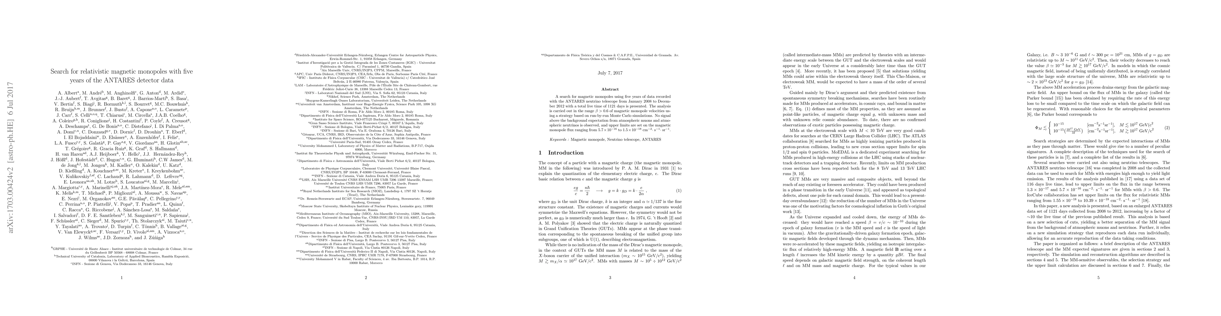 A 5-year analysis of ANTARES data found no evidence of relativistic magnetic monopoles, setting upper limits on their flux.