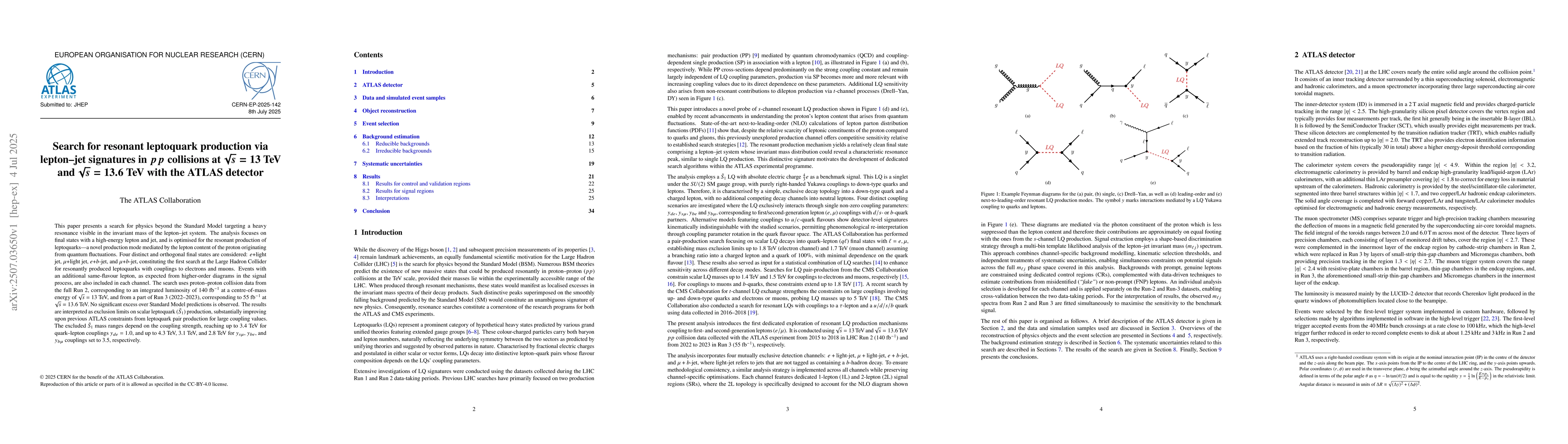 This paper presents a search for physics beyond the Standard Model targeting a heavy resonance visible in the invariant mass of the lepton-jet system. The analysis focuses on final states with a high-energy lepton and jet, and is optimised for the resonant production of leptoquarks-a novel production mode mediated by the lepton content of the proton originating from quantum fluctuations. Four distinct and orthogonal final states are considered: $e$+light jet, $\mu$+light jet, $e$+$b$-jet, and $\mu$+$b$-jet, constituting the first search at the Large Hadron Collider for resonantly produced leptoquarks with couplings to electrons and muons. Events with an additional same-flavour lepton, as expected from higher-order diagrams in the signal process, are also included in each channel. The search uses proton-proton collision data from the full Run 2, corresponding to an integrated luminosity of 140 fb$^{-1}$ at a centre-of-mass energy of $\sqrt{s} = 13$ TeV, and from a part of Run 3 (2022-2023), corresponding to 55 fb$^{-1}$ at $\sqrt{s} = 13.6$ TeV. No significant excess over Standard Model predictions is observed. The results are interpreted as exclusion limits on scalar leptoquark ($\tilde{S}_1$) production, substantially improving upon previous ATLAS constraints from leptoquark pair production for large coupling values. The excluded $\tilde{S}_1$ mass ranges depend on the coupling strength, reaching up to 3.4 TeV for quark-lepton couplings $y_{de} = 1.0$, and up to 4.3 TeV, 3.1 TeV, and 2.8 TeV for $y_{s\mu}$, $y_{be}$, and $y_{b\mu}$ couplings set to 3.5, respectively.