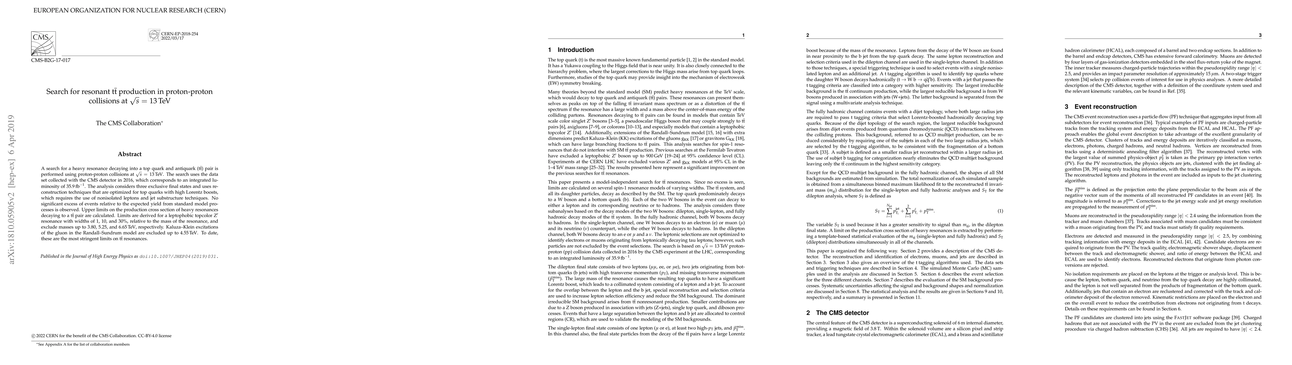 This paper reports a search for heavy resonances decaying into top quark-antiquark pairs in proton-proton collisions at 13 TeV using the CMS detector. No significant excess over standard model predictions is observed, leading to stringent upper limits on the production cross sections for various hypothetical resonances, including the Z' and Randall-Sundrum model gluons, up to 6.65 TeV.