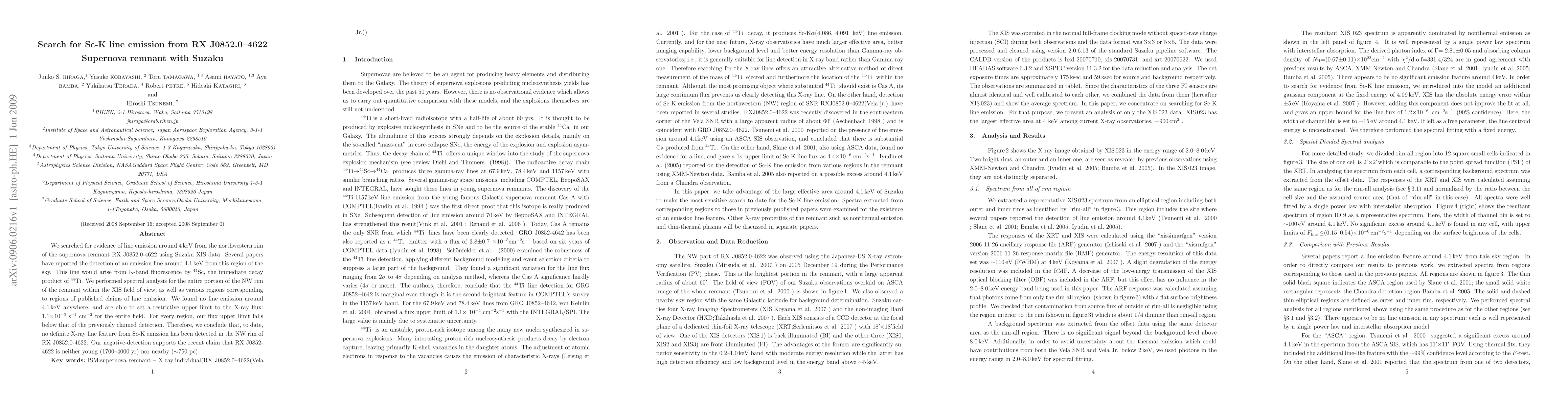 This study using Suzaku XIS data found no evidence of a 4.1keV emission line from Sc-K fluorescence in the northwestern rim of the supernova remnant RX J0852.0-4622, setting a restrictive upper limit on the X-ray flux, which contradicts previous claims of detection. This negative result supports the hypothesis that RX J0852.0-4622 is neither young nor nearby.