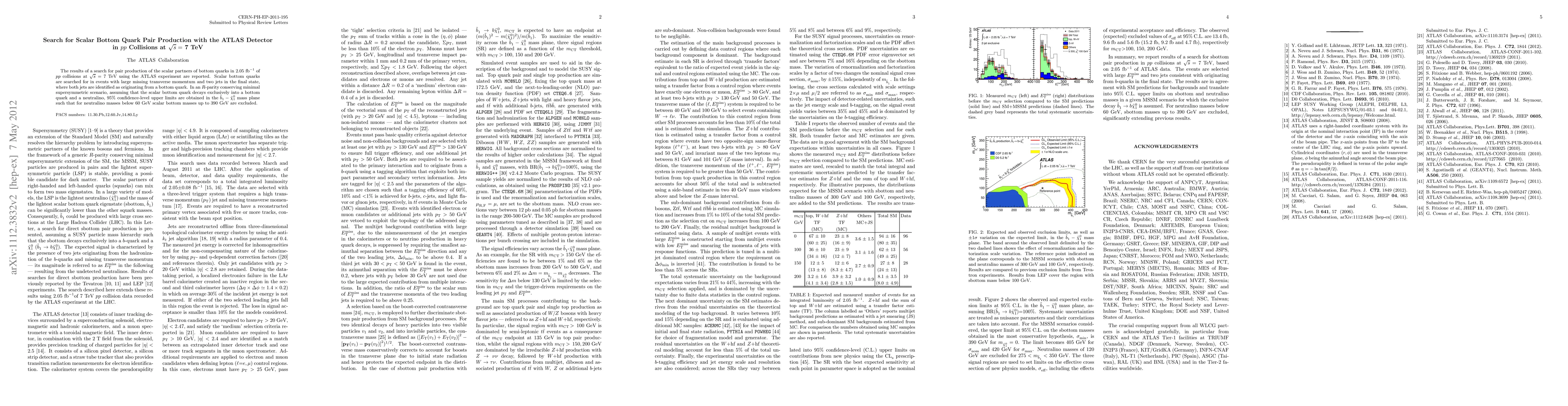 The ATLAS experiment searched for scalar bottom quark pairs in 2.05 fb^-1 of pp collisions at 7 TeV, focusing on events with large missing transverse momentum and two b-jets. No evidence of scalar bottom production was found, leading to exclusion limits on tilde{b}_1 masses up to 390 GeV for neutralino masses below 60 GeV.