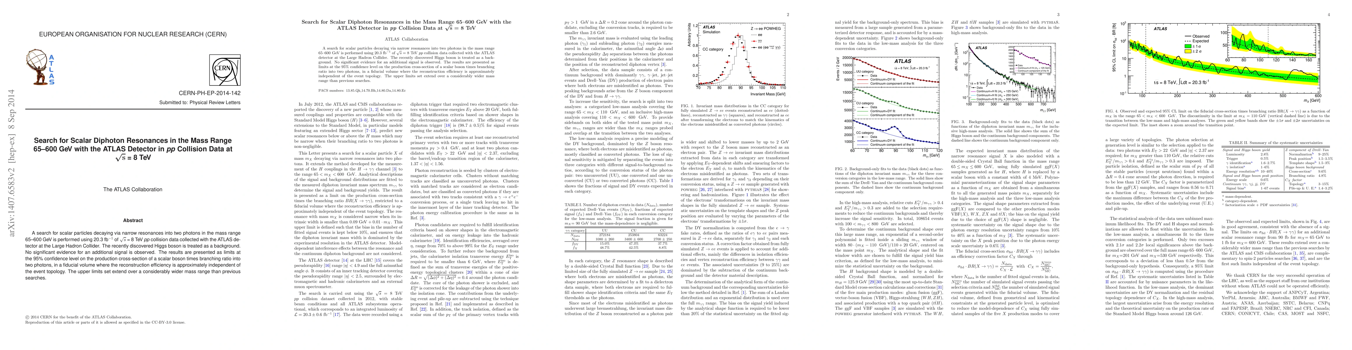 A search for scalar particles decaying via narrow resonances into two photons in the mass range $65-600$ GeV is performed using 20.3 fb$^{-1}$ of $\sqrt{s}$ = 8 TeV $pp$ collision data collected with the ATLAS detector at the Large Hadron Collider. The recently discovered Higgs boson is treated as a background. No significant evidence for an additional signal is observed. The results are presented as limits at the 95 % confidence level on the production cross-section of a scalar boson times branching ratio into two photons, in a fiducial volume where the reconstruction efficiency is approximately independent of the event topology. The upper limits set extend over a considerably wider mass range than previous searches.