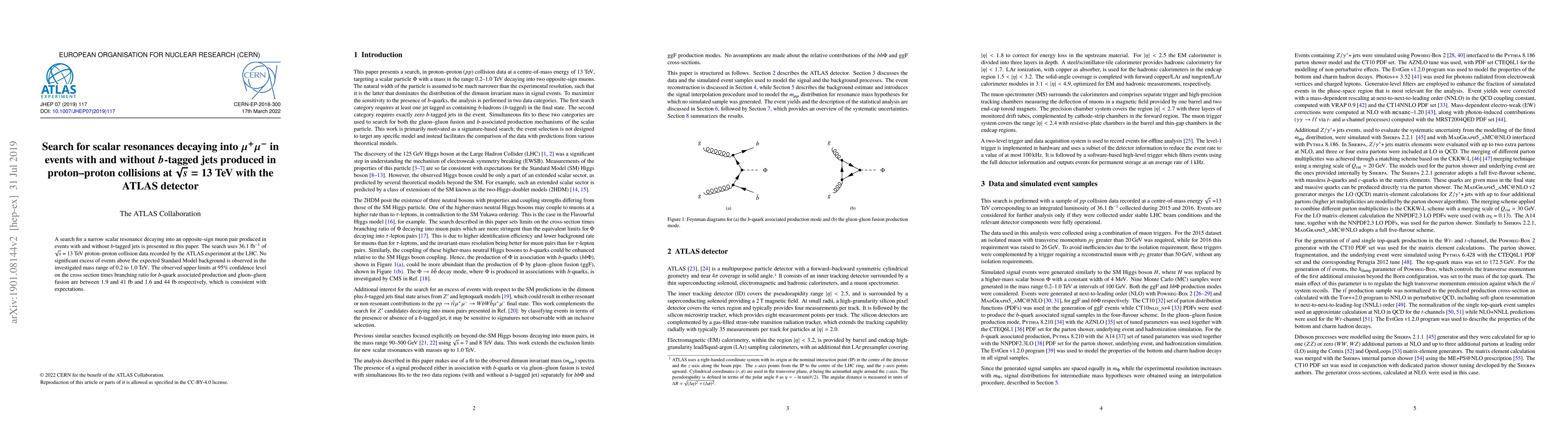 A search for a narrow scalar resonance decaying into an opposite-sign muon pair produced in events with and without $b$-tagged jets is presented in this paper. The search uses 36.1 fb$^{-1}$ of $\sqrt{s}= 13$ TeV proton-proton collision data recorded by the ATLAS experiment at the LHC. No significant excess of events above the expected Standard Model background is observed in the investigated mass range of 0.2 to 1.0 TeV. The observed upper limits at 95$\%$ confidence level on the cross section times branching ratio for $b$-quark associated production and gluon-gluon fusion are between 1.9 and 41 fb and 1.6 and 44 fb respectively, which is consistent with expectations.