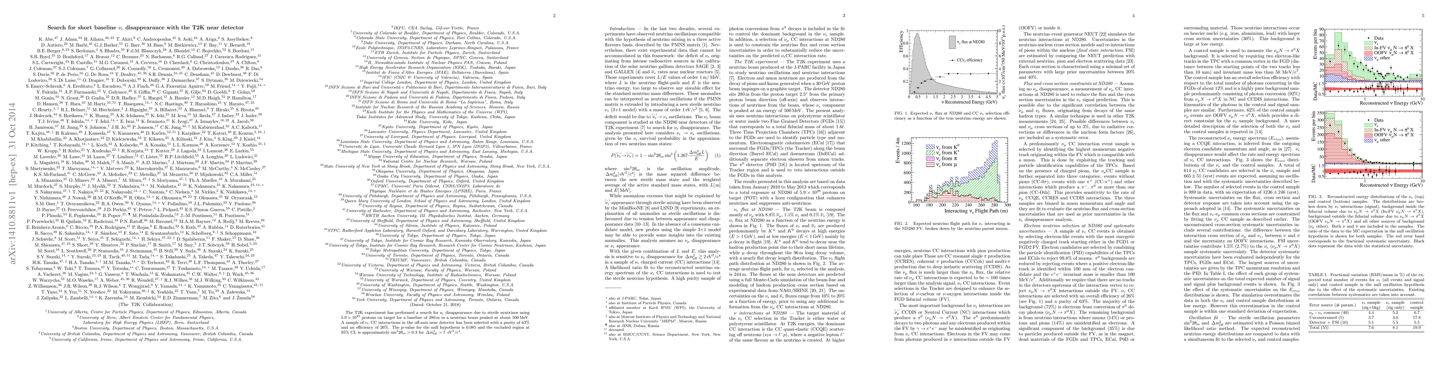 The T2K experiment has performed a search for $\nu_e$ disappearance due to sterile neutrinos using $5.9 \times 10^{20}$ protons on target for a baseline of $280 m$ in a neutrino beam peaked at about $500 MeV$. A sample of \nu_e CC interactions in the off-axis near detector has been selected with a purity of 63\% and an efficiency of 26\%. The p-value for the null hypothesis is 0.085 and the excluded region at 95\% CL is approximately $sin^2 2 \theta_{ee} > 0.3$ for $\Delta m^2_{eff} > 7 eV^2 / c^4$.