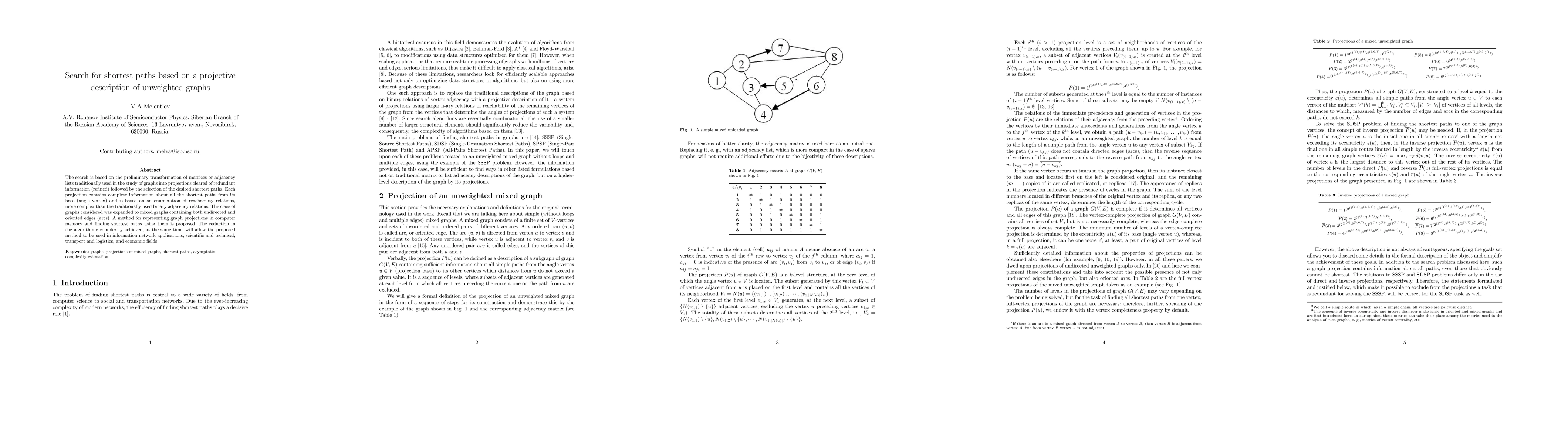 This paper proposes a method for finding shortest paths in unweighted graphs by transforming traditional adjacency matrices or lists into refined projections that eliminate redundant information. The method applies to mixed graphs with both undirected and oriented edges, offering reduced algorithmic complexity suitable for various applications in network, transport, and economic domains.