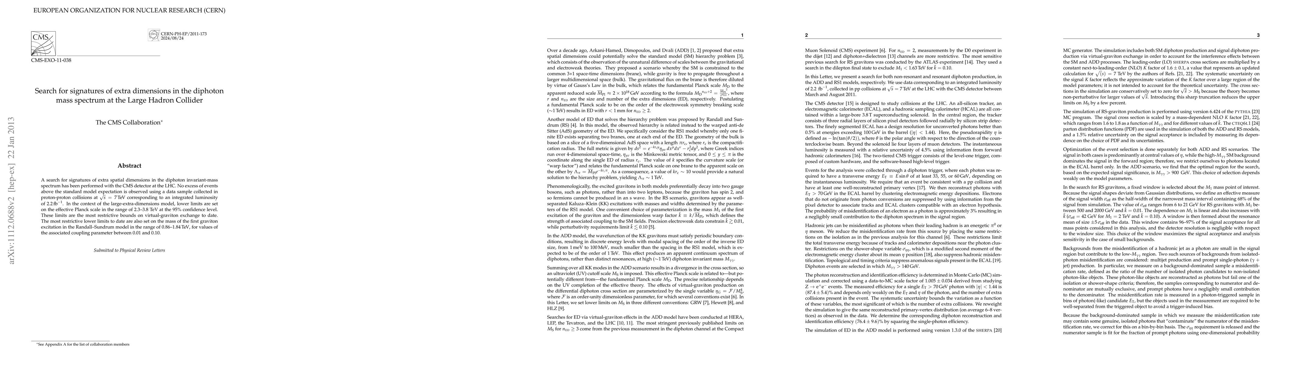 This paper reports a search for extra dimensions using the diphoton mass spectrum at the LHC, finding no evidence of deviations from the standard model. The study sets new lower limits on the effective Planck scale and the first graviton excitation mass in various theoretical models.