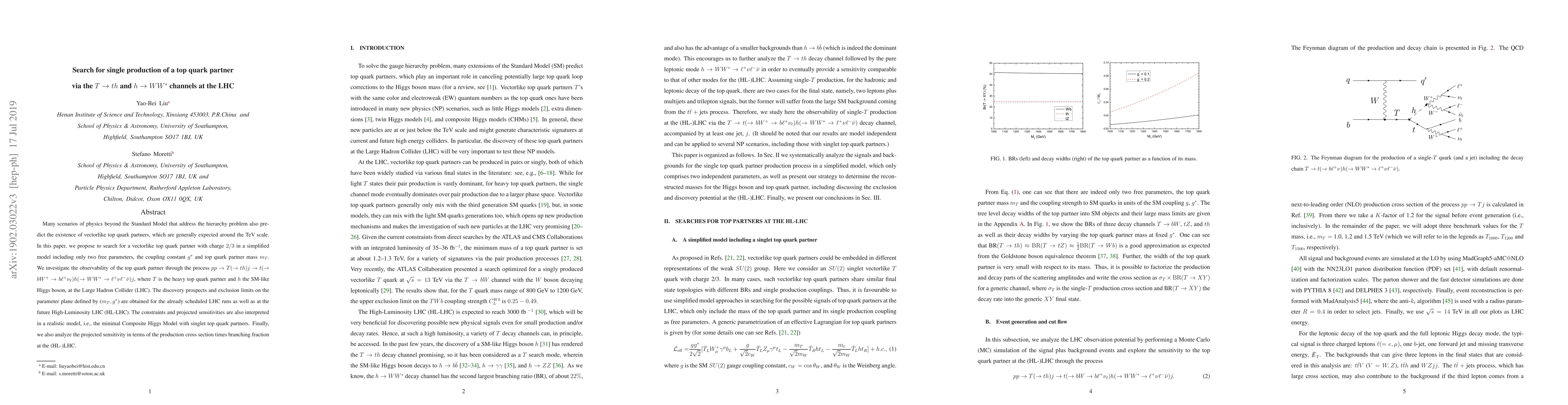 Many scenarios of physics beyond the Standard Model that address the hierarchy problem also predict the existence of vector-like top quark partners, which are generally expected around the TeV scale. In this paper, we propose to search for a vector-like top quark partner with charge $2/3$ in a simplified model including only two free parameters, the coupling constant $g^{\ast}$ and top quark partner mass $m_T$. We investigate the observability of the top quark partner through the process $pp \to T(\to th)j\to t(\to b W^+\to b \ell^{+} \nu_{\ell})h( \to WW^{\ast}\to \ell^{+}\nu\ell^{-}\bar{\nu}) j$, where $T$ is the heavy top quark partner and $h$ the SM-like Higgs boson, at the Large Hadron Collider (LHC). The discovery prospects and exclusion limits on the parameter plane defined by ($m_T,g^{\ast}$) are obtained for the already scheduled LHC runs as well as at the future High-Luminosity~LHC (HL-LHC). The constraints and projected sensitivities are also interpreted in a realistic model, i.e., the minimal Composite Higgs Model with singlet top quark partners. We finally also analyze the projected sensitivity in terms of the production cross section times branching fraction at the (HL-)LHC.