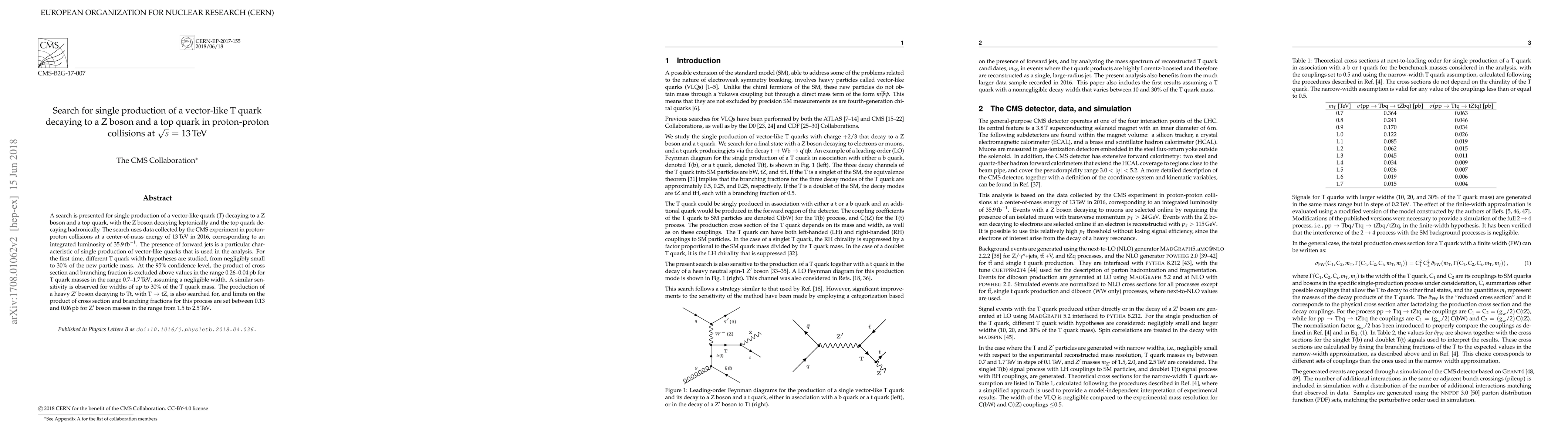 This paper reports a search for single production of a vector-like T quark decaying to a Z boson and a top quark, using data from the CMS experiment at 13 TeV. The analysis excludes the production of T quarks with masses up to 1.7 TeV at 95% confidence level, with sensitivity to varying T quark widths.