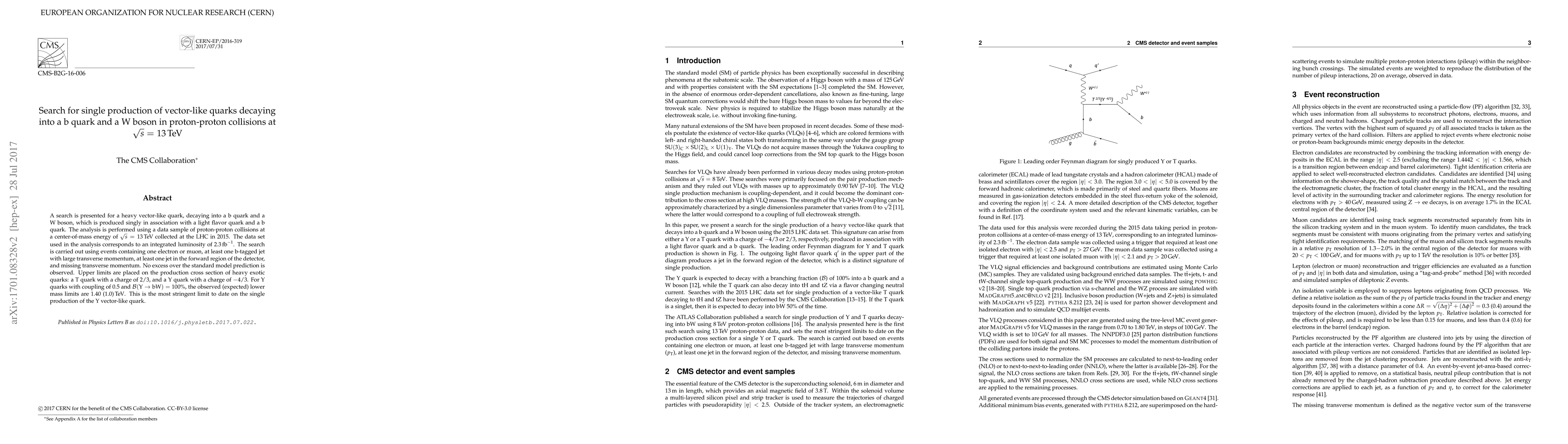 Scientists searched for evidence of a heavy vector-like quark produced in proton-proton collisions at 13 TeV, but found no excess over standard model predictions.